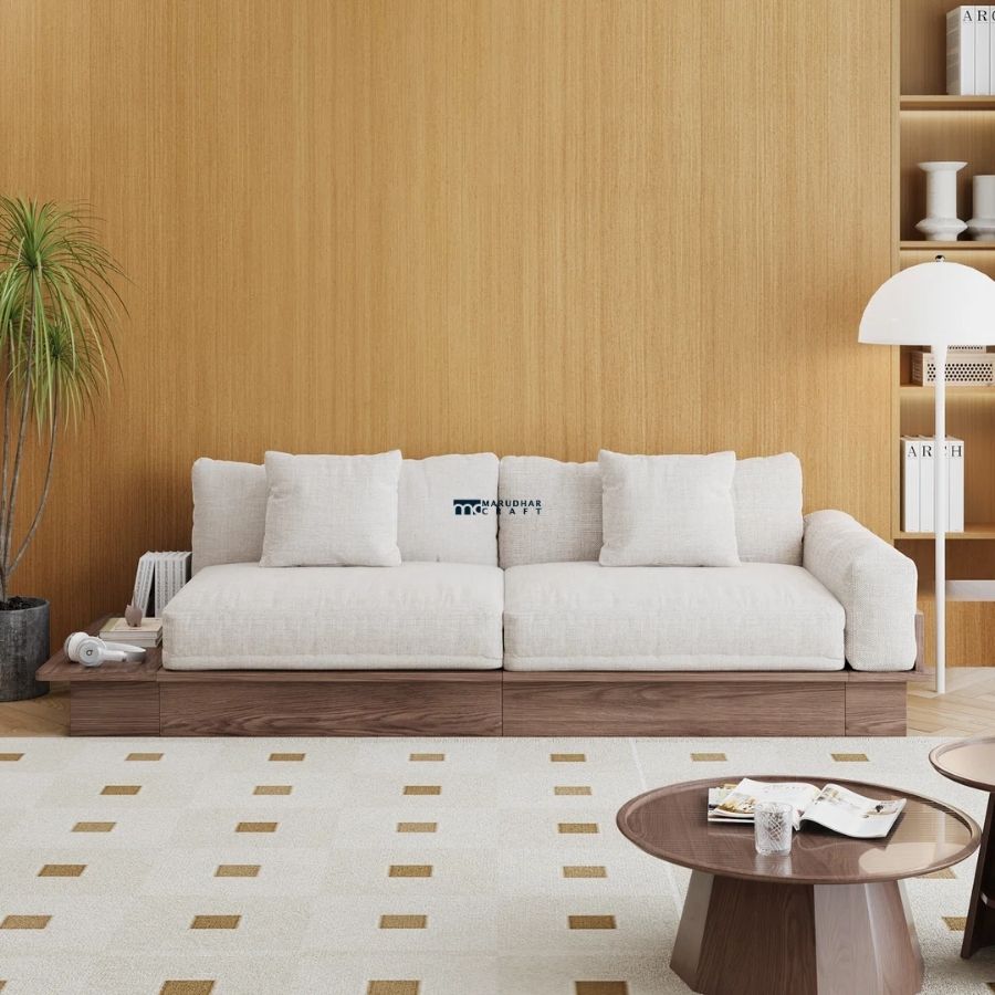 The Nordic Ease Low-Profile Wooden Sofa is designed for relaxed modern living with a minimalist aesthetic. Featuring a sturdy wooden base and soft neutral fabric cushions, this sofa offers deep seating and exceptional comfort. Its clean lines, low height, and contemporary design make it an ideal choice for modern living rooms, lounges, or open-plan spaces, blending warmth and elegance effortlessly.