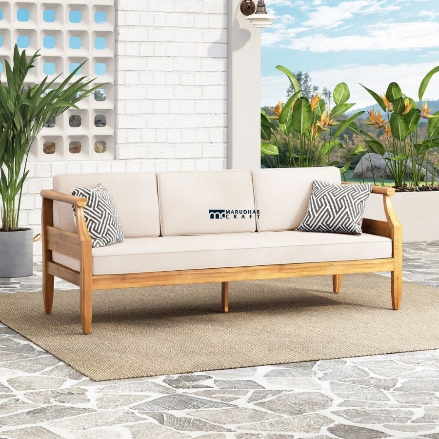 This elegant outdoor 3-seater sofa is crafted with a solid wooden frame and complemented by soft, weather-resistant cushions. Designed for comfort and durability, it enhances patios, balconies, gardens, and terrace spaces with a natural, modern charm.