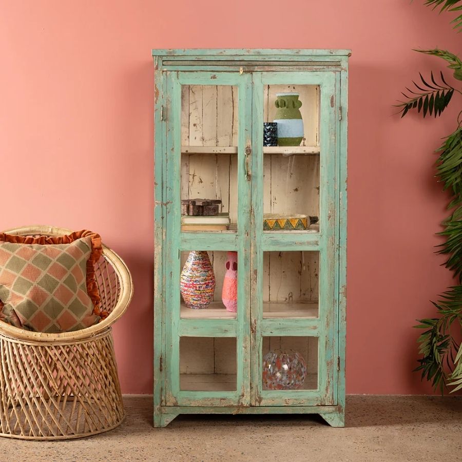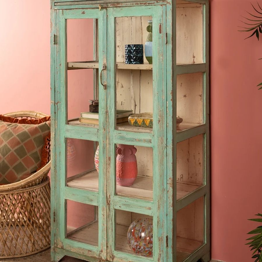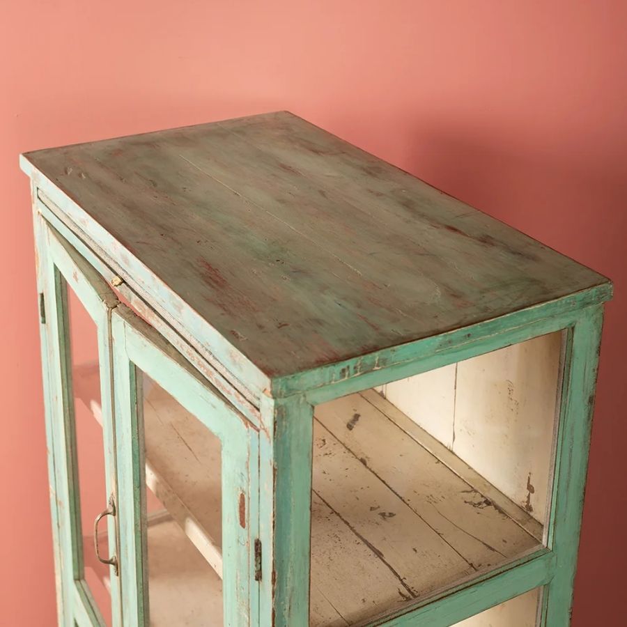Pale Green Vintage Wooden Cabinet with Glass Doors Original price was: ₹64,999.00.Current price is: ₹59,999.00.