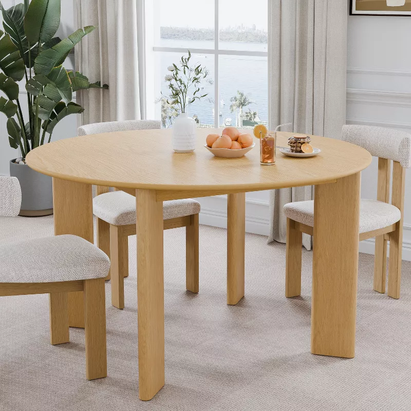 Create a warm and inviting dining space with the PexFix 52-inch Solid Wood Round Farmhouse Dining Table. Designed for modern homes and family gatherings, this beautifully crafted table features a natural yellow wood finish that highlights the rich grain of solid wood. Its spacious round tabletop comfortably seats up to six people, making it perfect for meals, celebrations, and everyday dining.