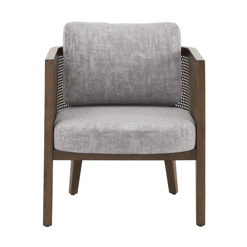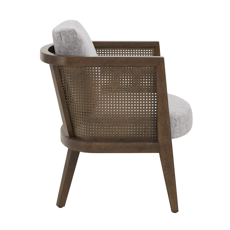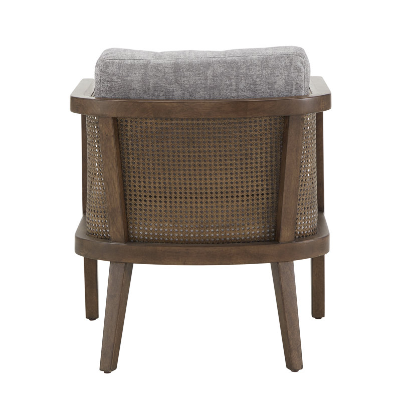 Solid Wood Armchair with Handwoven Rattan Backrest