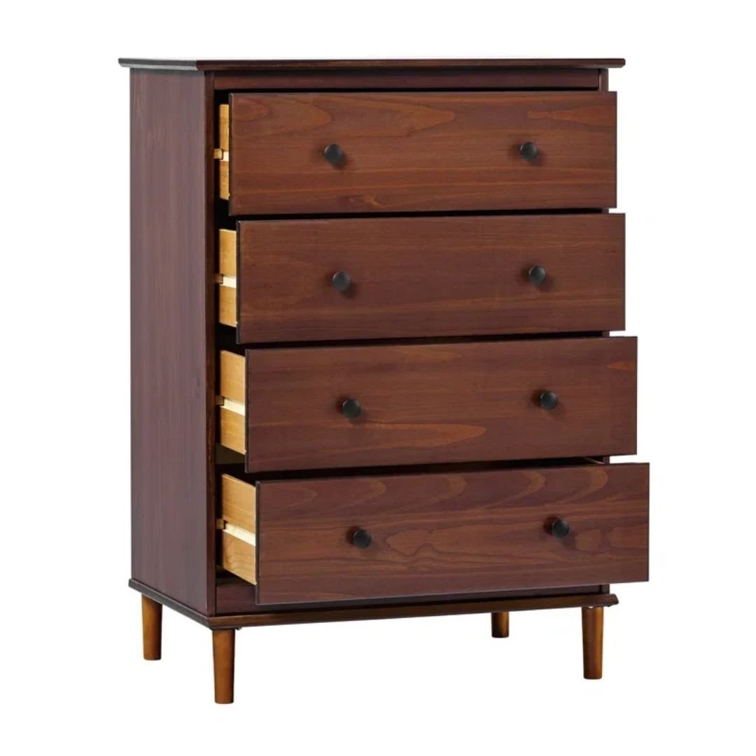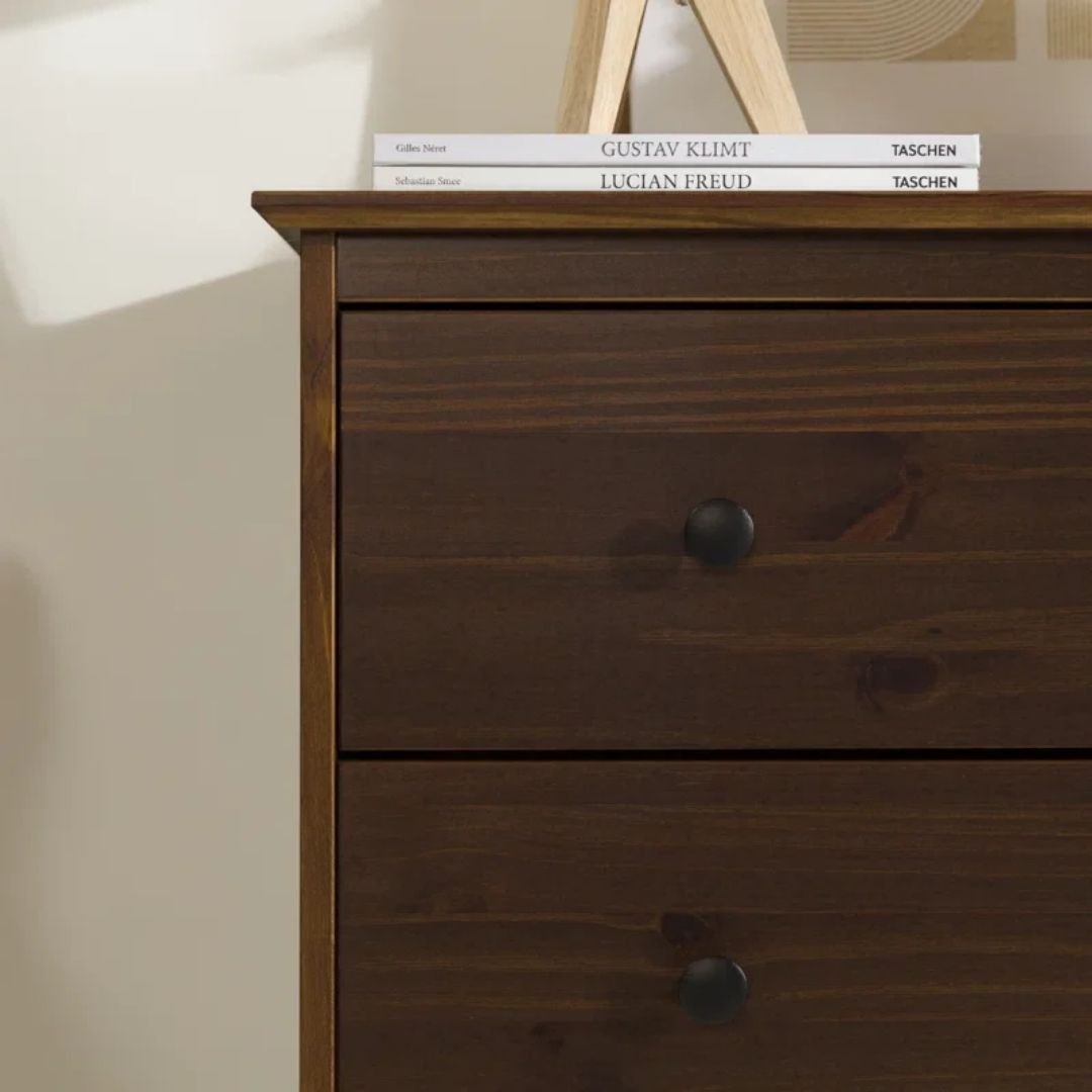 Sustainable, stylish, and storage savvy, this solid pine dresser is just what your bedroom needs. Four drawers on smooth wood runners offer ample, convenient closed storage, while its stained or painted finish will complement any other bedroom furniture. Whether it’s housing your workout clothes and PJs in the bedroom, or everyday essentials in the living room, this storage chest will look right at home anywhere, whether your style is modern, boho, or coastal.