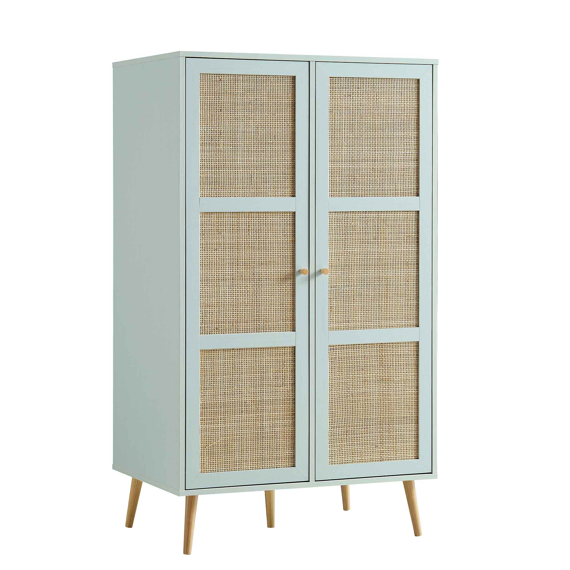 Rattan Compact Double Wardrobe, Mint Green