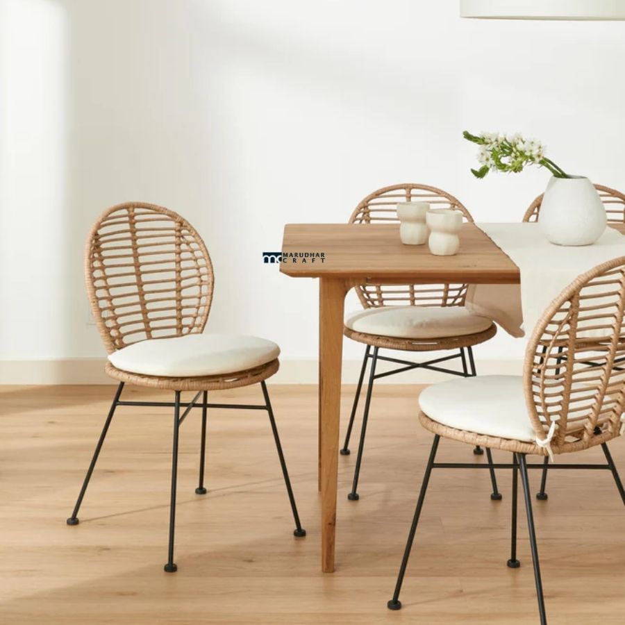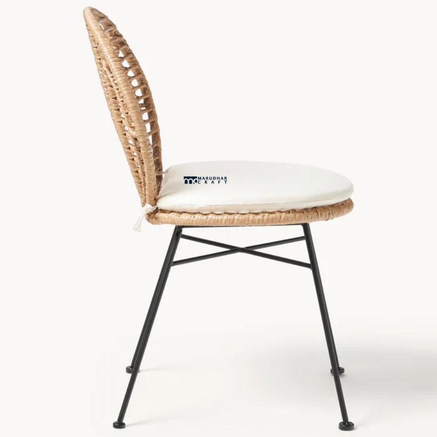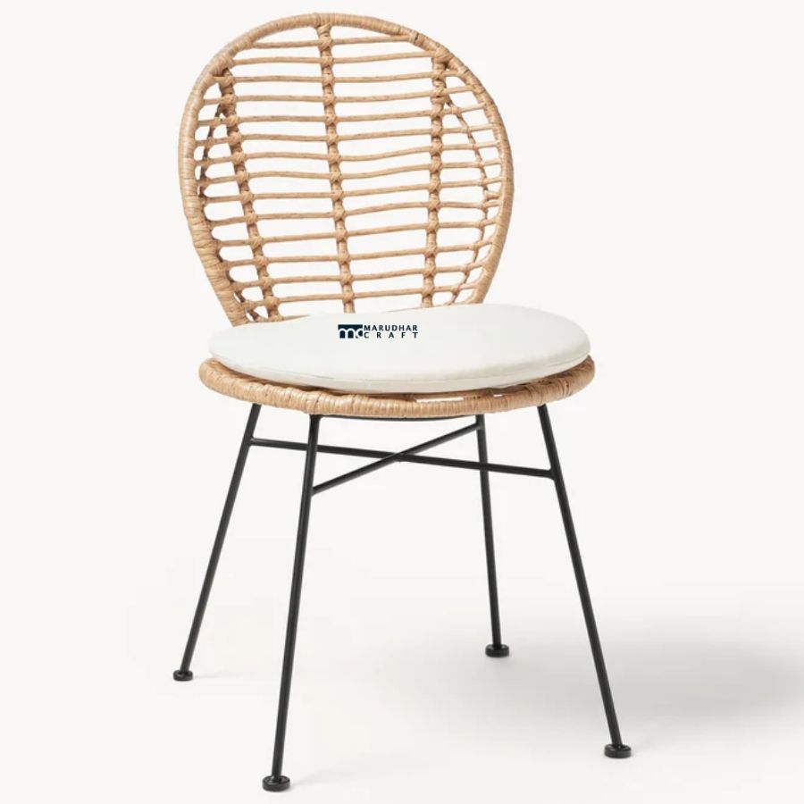 Rattan Dining Chair with Cushioned Seat & Metal Legs (Natural Finish)