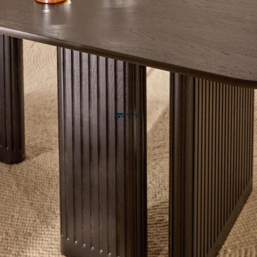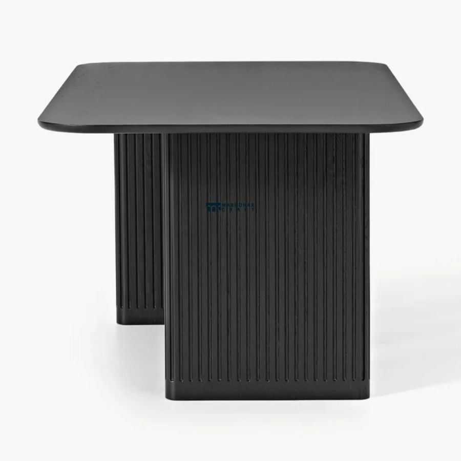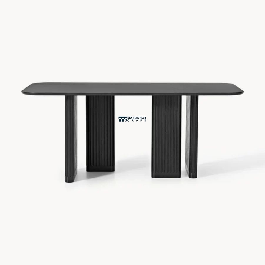 This modern rectangular dining table features a sleek, elongated tabletop supported by bold fluted panel legs. With its architectural form and refined finish, it creates a striking centerpiece for contemporary dining spaces while offering excellent stability and generous seating space.