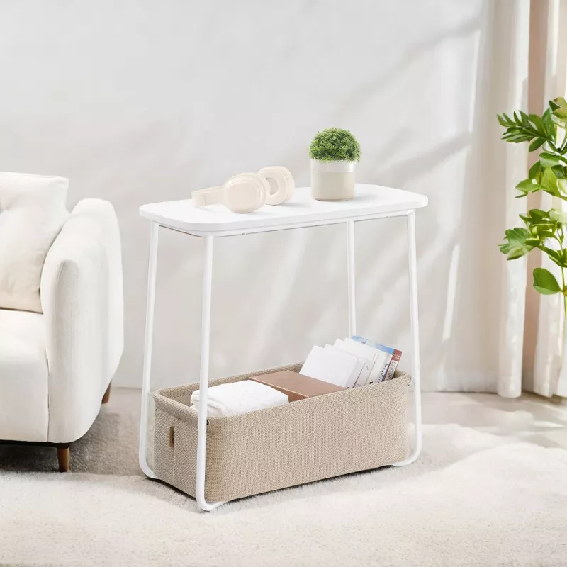 Designed for compact spaces, this Rectangular Side Table is a stylish and practical addition to any living room or bedroom. The petite tabletop provides just the right amount of surface space for lamps, drinks, or décor, while the included storage basket offers a convenient solution for organizing magazines, throws, or everyday essentials. Its clean, modern design blends easily with contemporary and minimalist interiors.