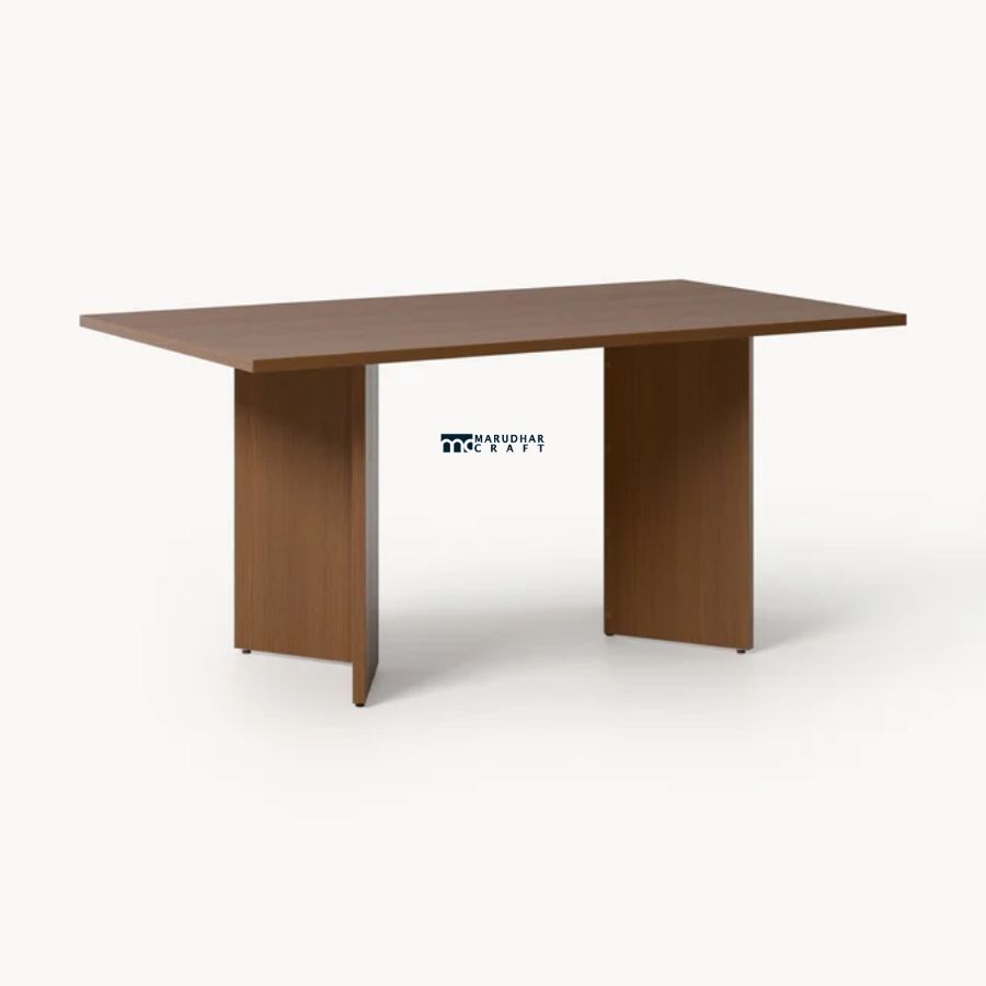 This contemporary rectangular dining table is crafted from solid wood and finished in a rich dark tone. Featuring bold panel-style legs and a clean architectural form, it offers strength, stability, and understated elegance—perfect for modern and refined dining interiors.