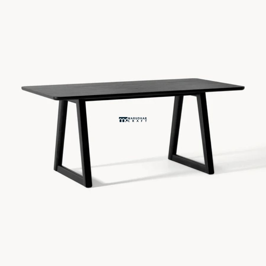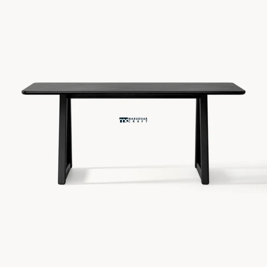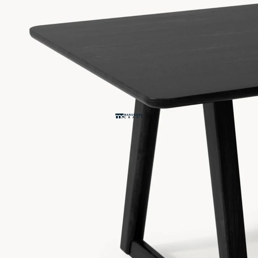 This rectangular dining table is crafted from solid wood and finished in an elegant dark tone. Featuring softly rounded edges and a sturdy silhouette, it offers a perfect balance of modern minimalism and everyday practicality, making it ideal for contemporary dining interiors.