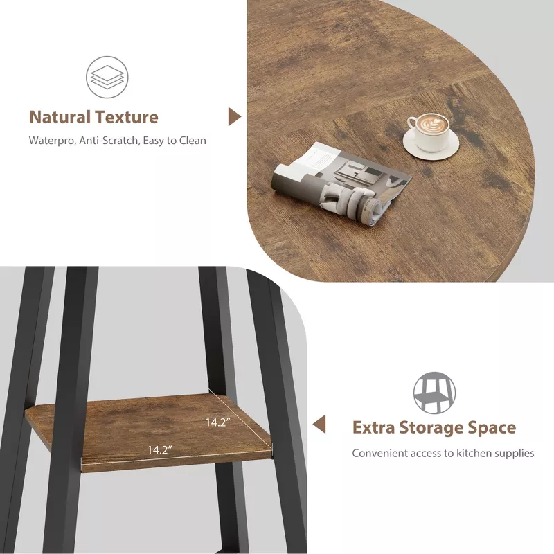 3-Piece Round Dining Table Set for 2 with Two-Level Storage – Brown Compact Dining Table