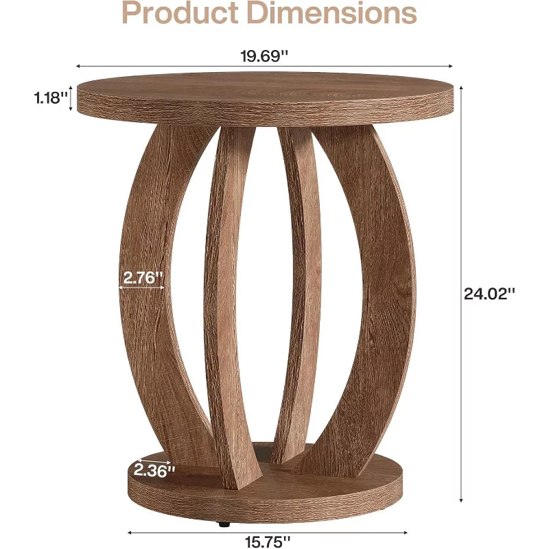 Add both style and functionality to your space with this Round End Table with Storage. Crafted from durable wood with a warm brown finish, this table features a spacious tabletop and built-in storage to help keep your living area organized. Its round shape softens the look of any room while offering a practical surface for lamps, décor, or everyday essentials. Perfect for living rooms, bedrooms, or reading corners, this end table blends seamlessly with modern and classic interiors.