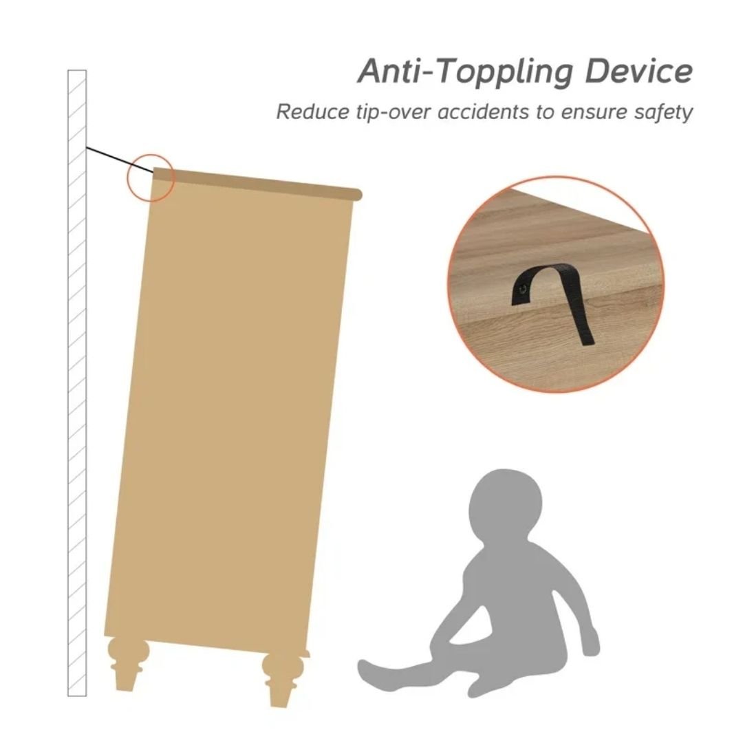 - Sturdy and durable: The bedroom dresser is made of durable engineered wood for long-term use, scratch resistant. The solid wood round gourd furniture legs make the dresser not slide easily, and provide great durability and stability. The chest of drawers is secured by the anti-dropping device to reduce tip-over accidents for more safety.