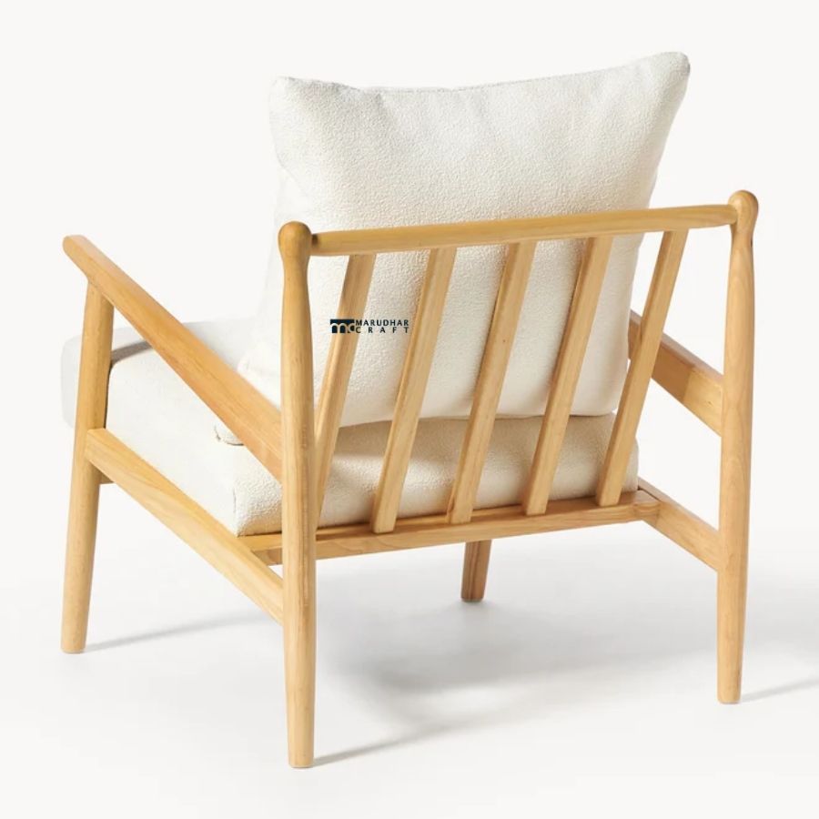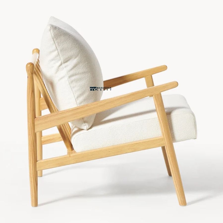 Create a calm and cozy atmosphere with this Scandinavian wooden lounge single seater chair. Crafted from a solid wood frame and paired with soft upholstered cushions, this chair offers relaxed comfort and minimalist elegance. Its clean lines and natural finish make it a perfect addition to bedrooms, living rooms, or serene reading corners.