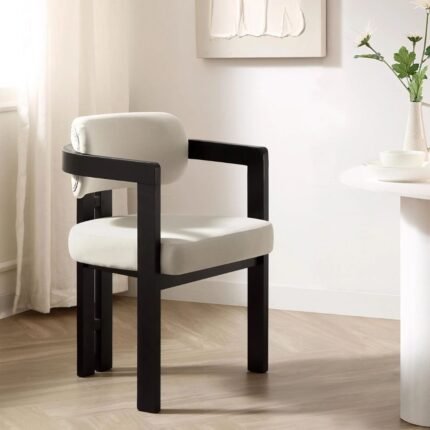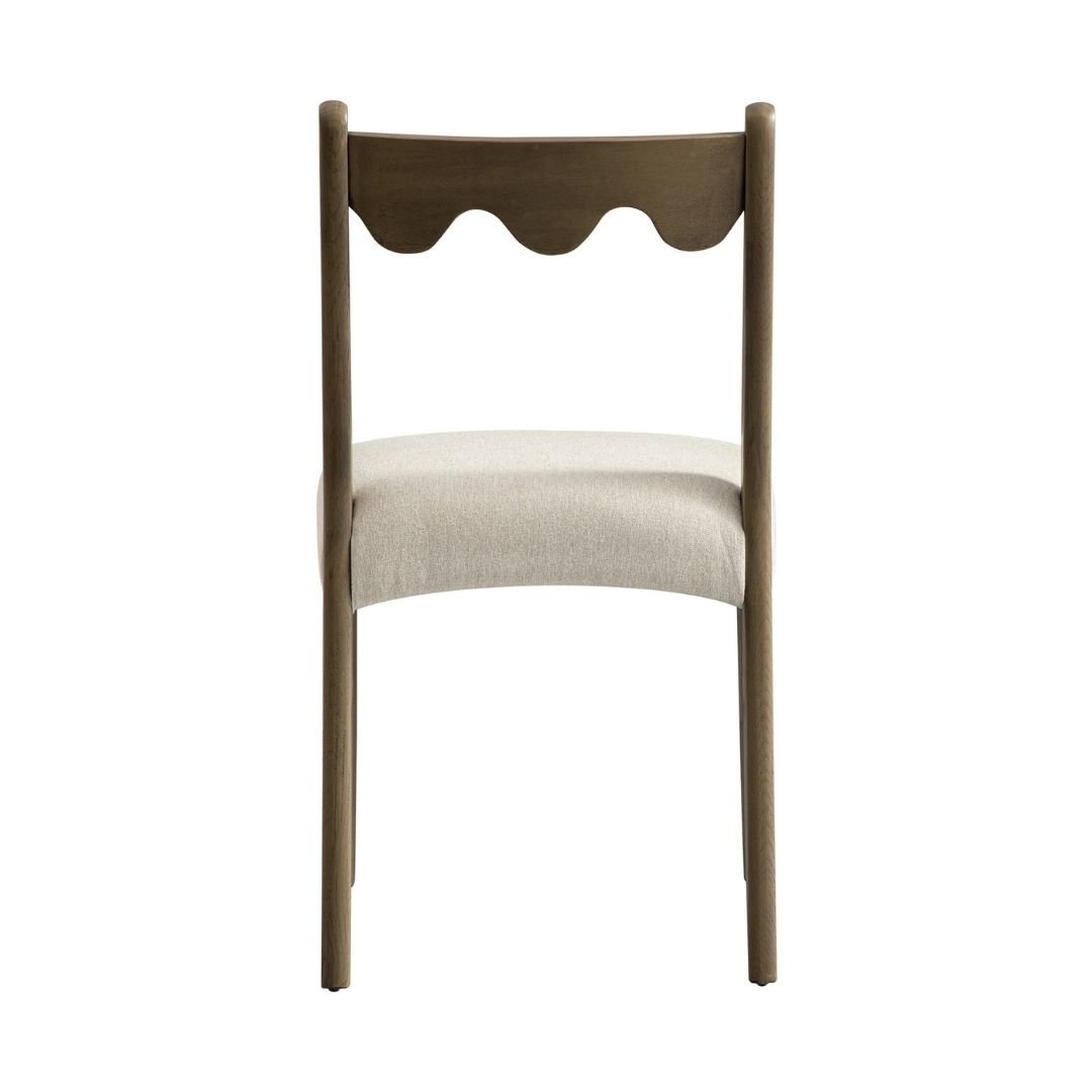 - Wavy back and rounded corners give the silhouette a light, organic presence, easy to pair with both traditional and contemporary tables.