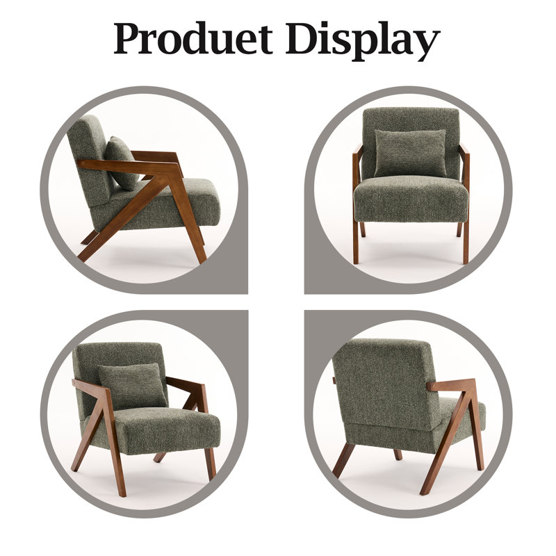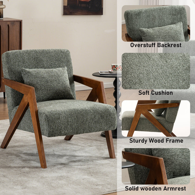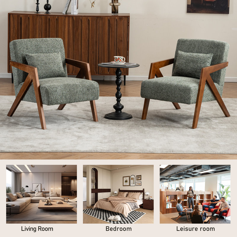 Set of 2 Solid Wood Accent Armchairs with Upholstery and Additional Pillow