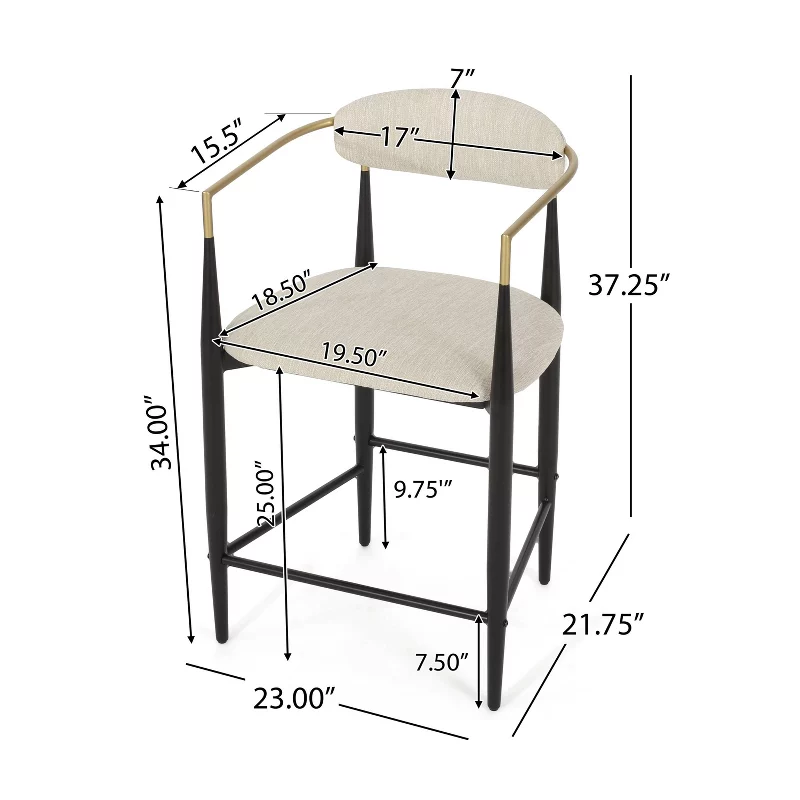Enhance your kitchen or bar seating with this stylish Set of 2 Upholstered Barstools. Designed with a strong iron frame, cushioned seat, supportive backrest, and integrated armrests, these barstools provide excellent comfort and durability. Their modern silhouette and generous proportions make them ideal for kitchen islands, home bars, or dining counters where comfort and style matter.