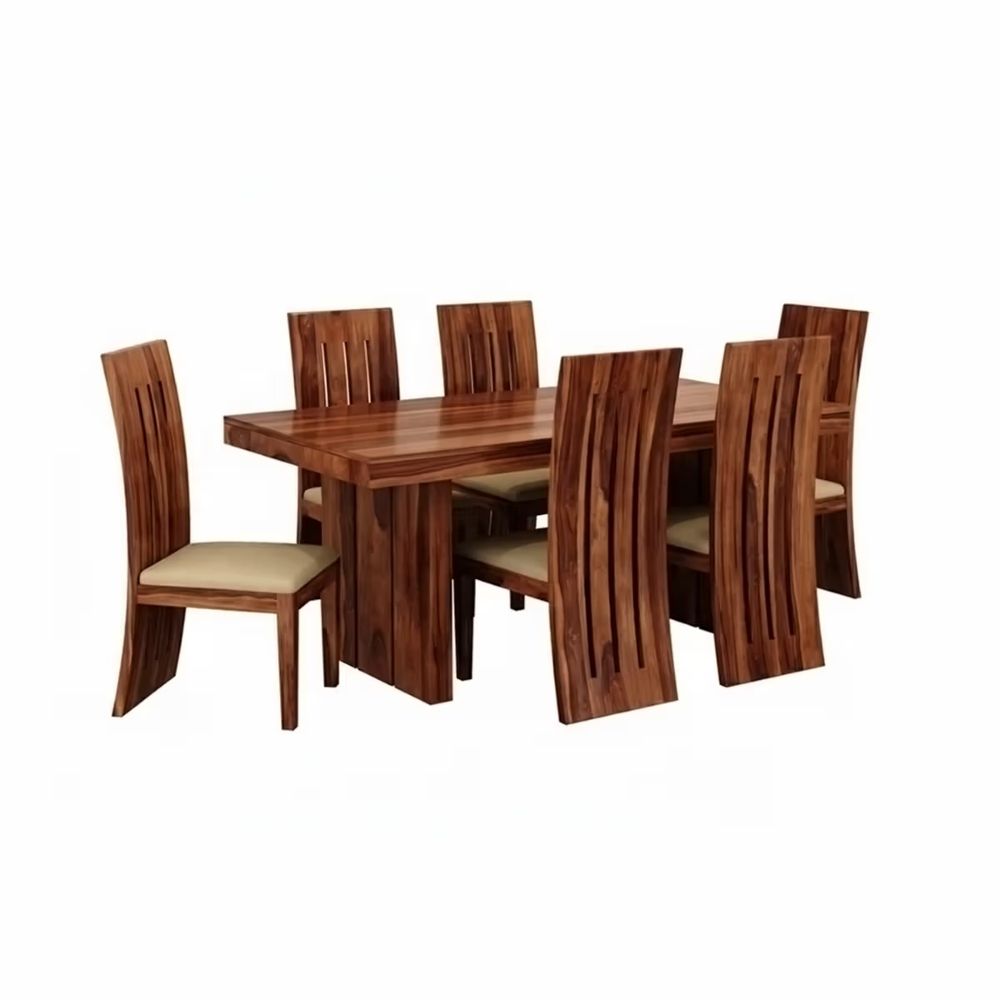 Bring timeless beauty and exceptional durability to your dining space with this Sheesham 6-Seater Dining Set. Crafted from 100% premium Sheesham wood, this set features a spacious dining table paired with six finely designed chairs, making it the perfect centerpiece for family dining, celebrations, and everyday gatherings. The natural grain patterns and rich wood tones add warmth and elegance to any home décor, while the sturdy construction ensures lasting performance. Whether you’re hosting guests or enjoying daily meals, this dining set combines style, comfort, and functionality in one striking design.