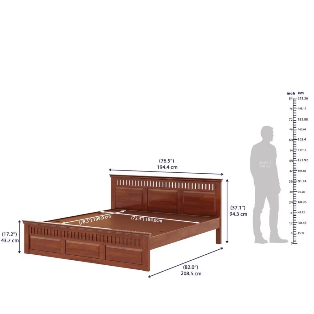 The non-storage design maintains a clean, minimalist look—perfect for open, spacious bedrooms. With its strong frame, sturdy support system, and classic aesthetic, this king-size bed becomes the perfect centerpiece for modern, contemporary, or traditional interiors. It is an ideal choice for homeowners who prefer simplicity, durability, and a premium wooden finish without the added storage components.