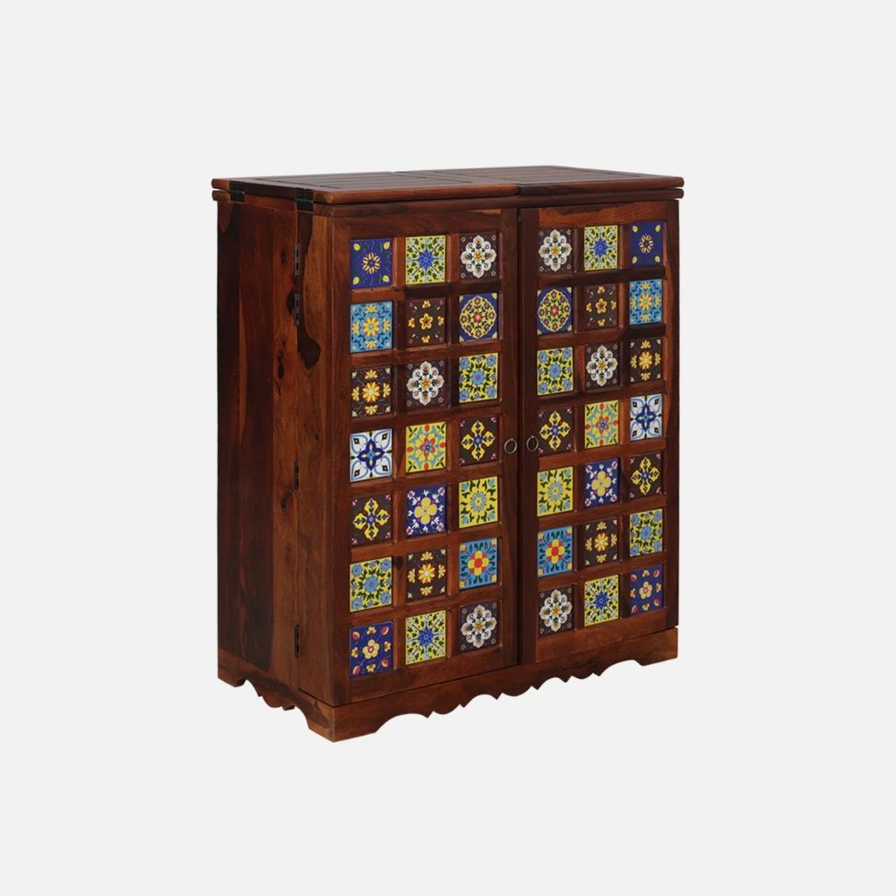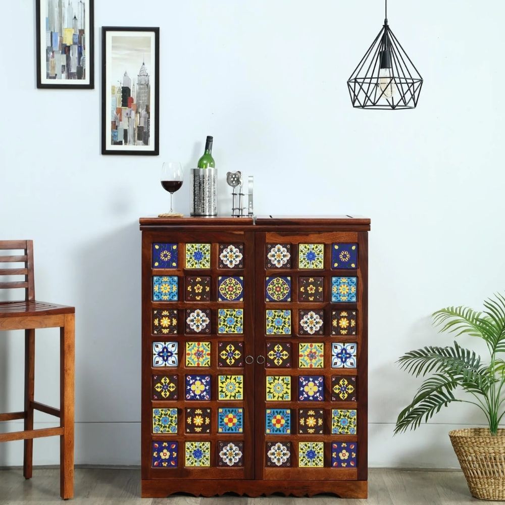 Sheesham Wood Bar Cabinet in Honey Oak Finish
