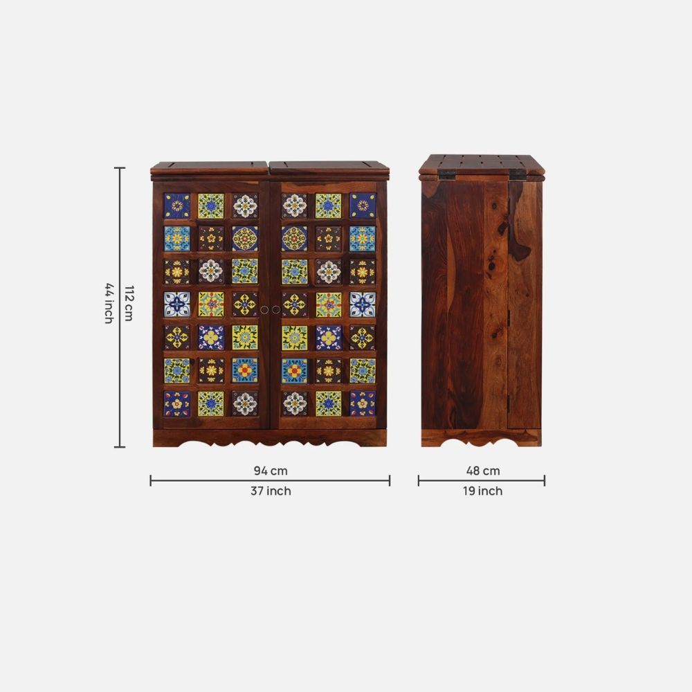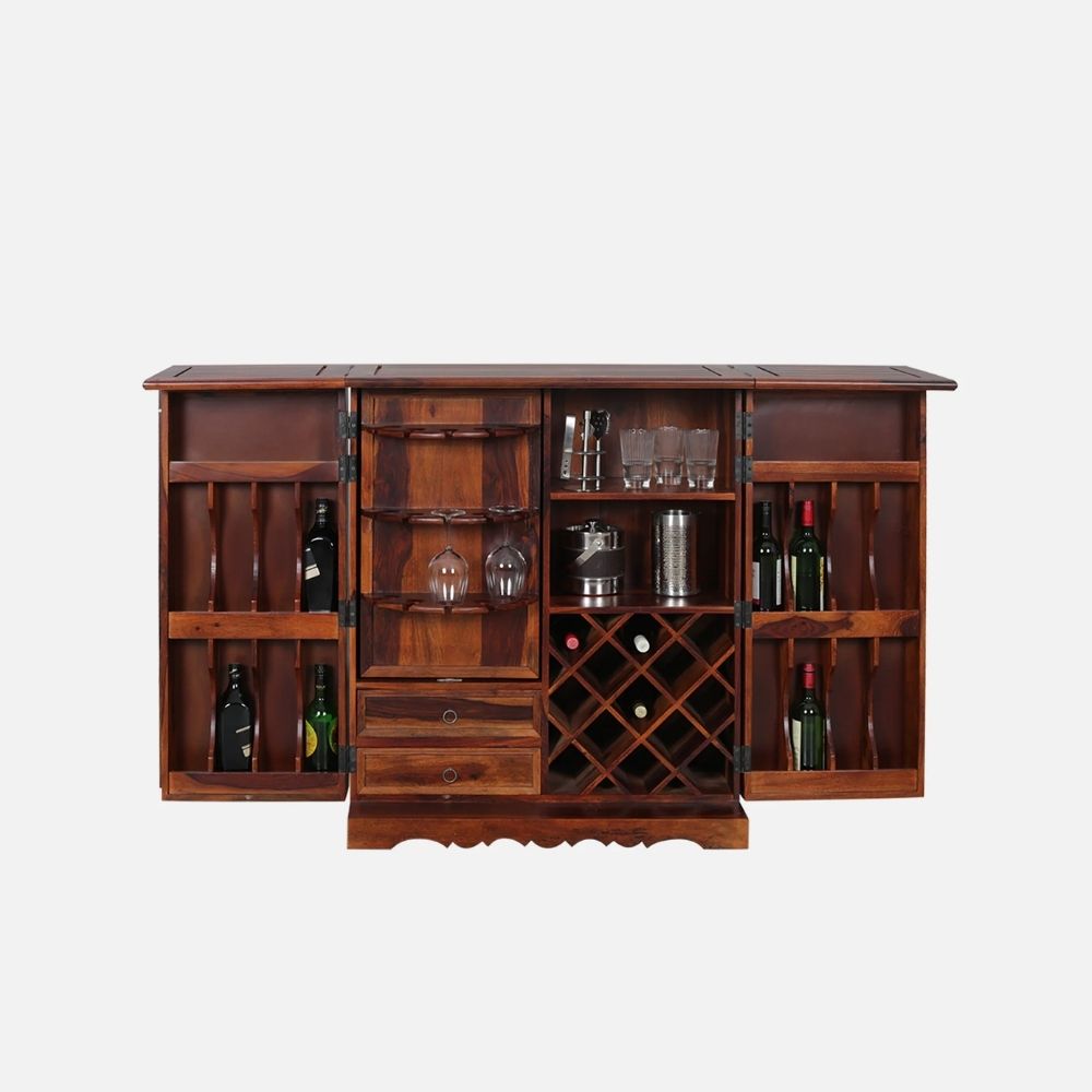Bring home a blend of elegance and durability with this Sheesham Wood Bar Cabinet, crafted in a rich Honey Oak finish. Designed to complement modern as well as traditional Indian interiors, this stylish cabinet offers ample space for bottles, glasses, and bar accessories, making it a perfect addition to your living or dining area.