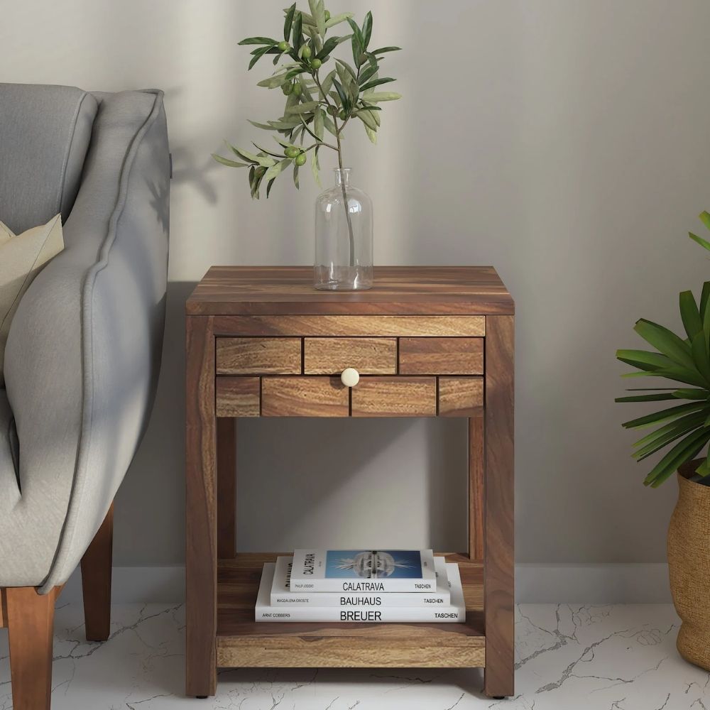 Sheesham Wood Bedside Table In Provincial Teak Finish