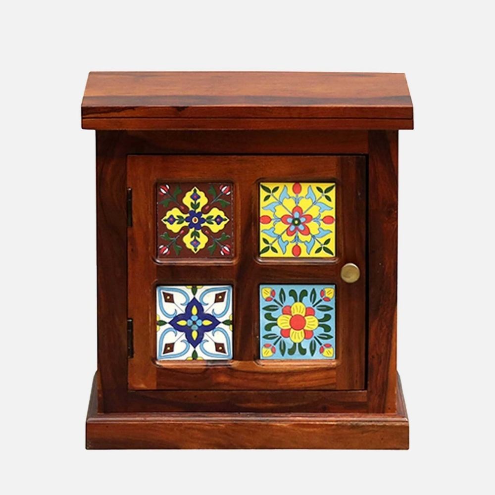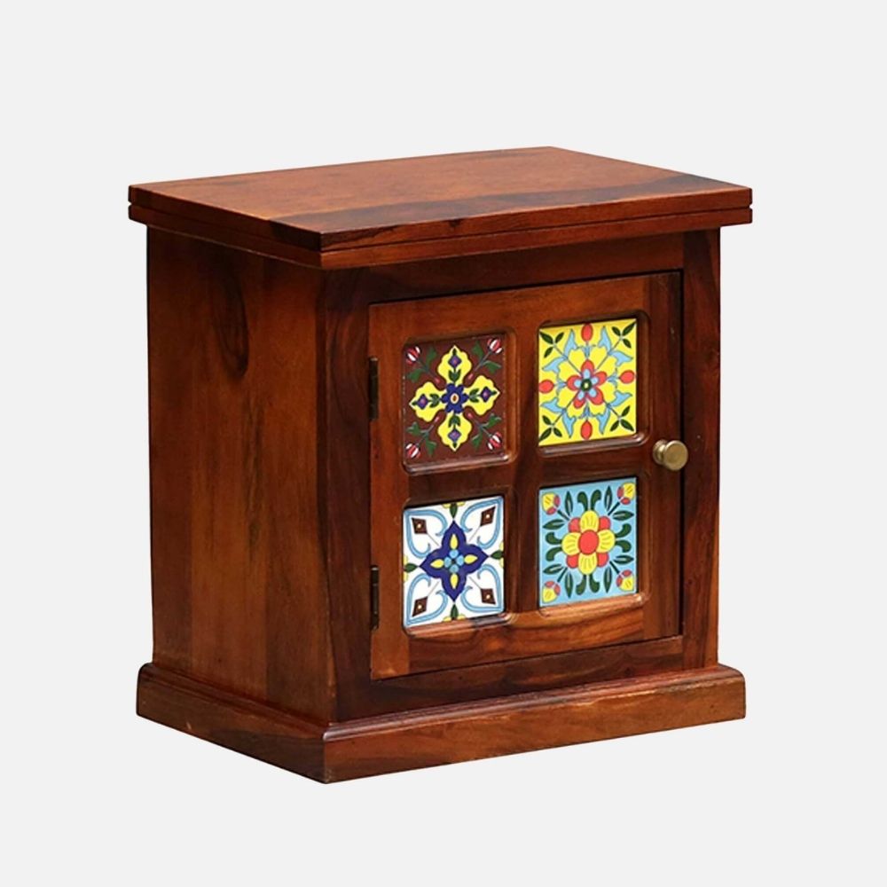 Sheesham Wood Bedside Table (Lhs Door) In Honey Oak Finish