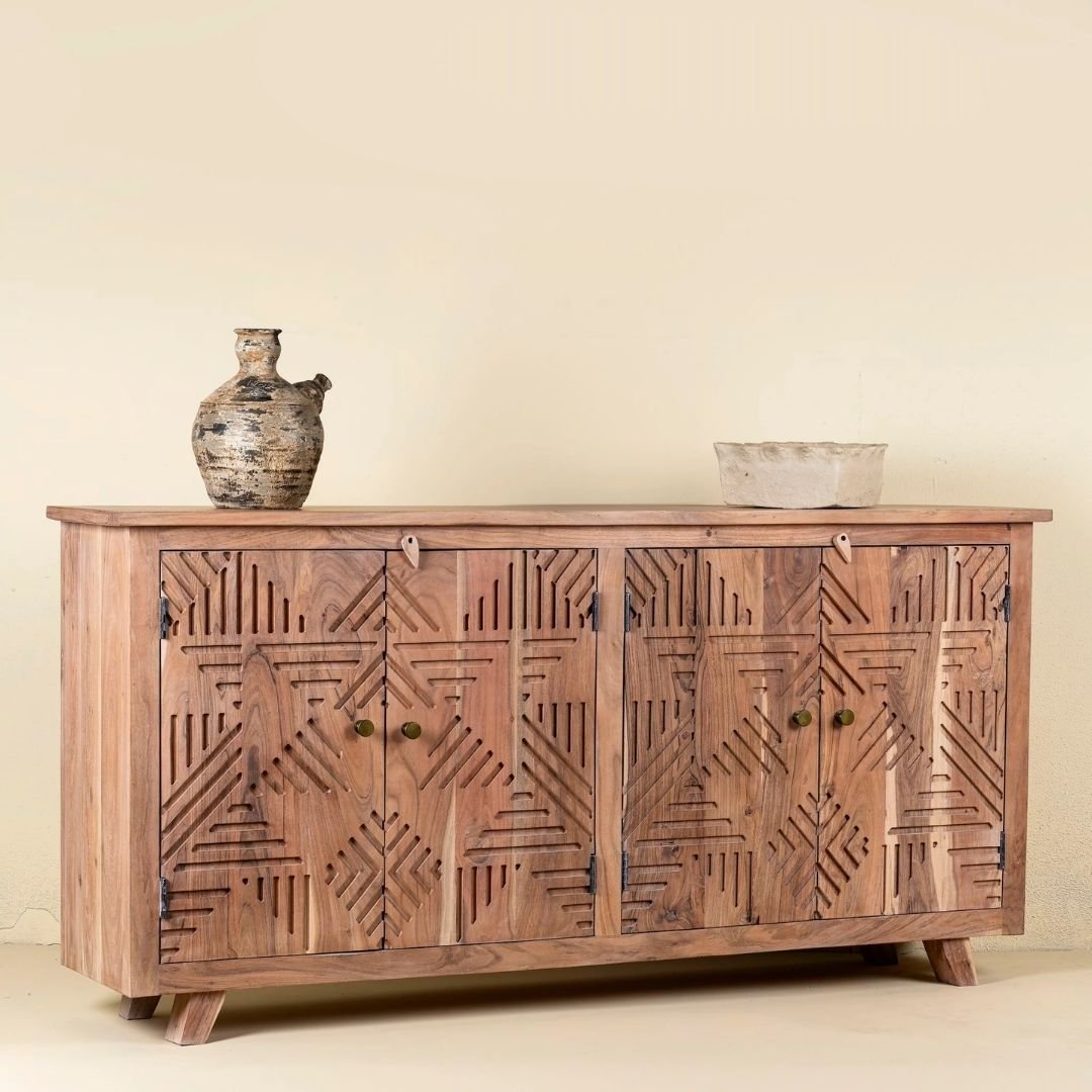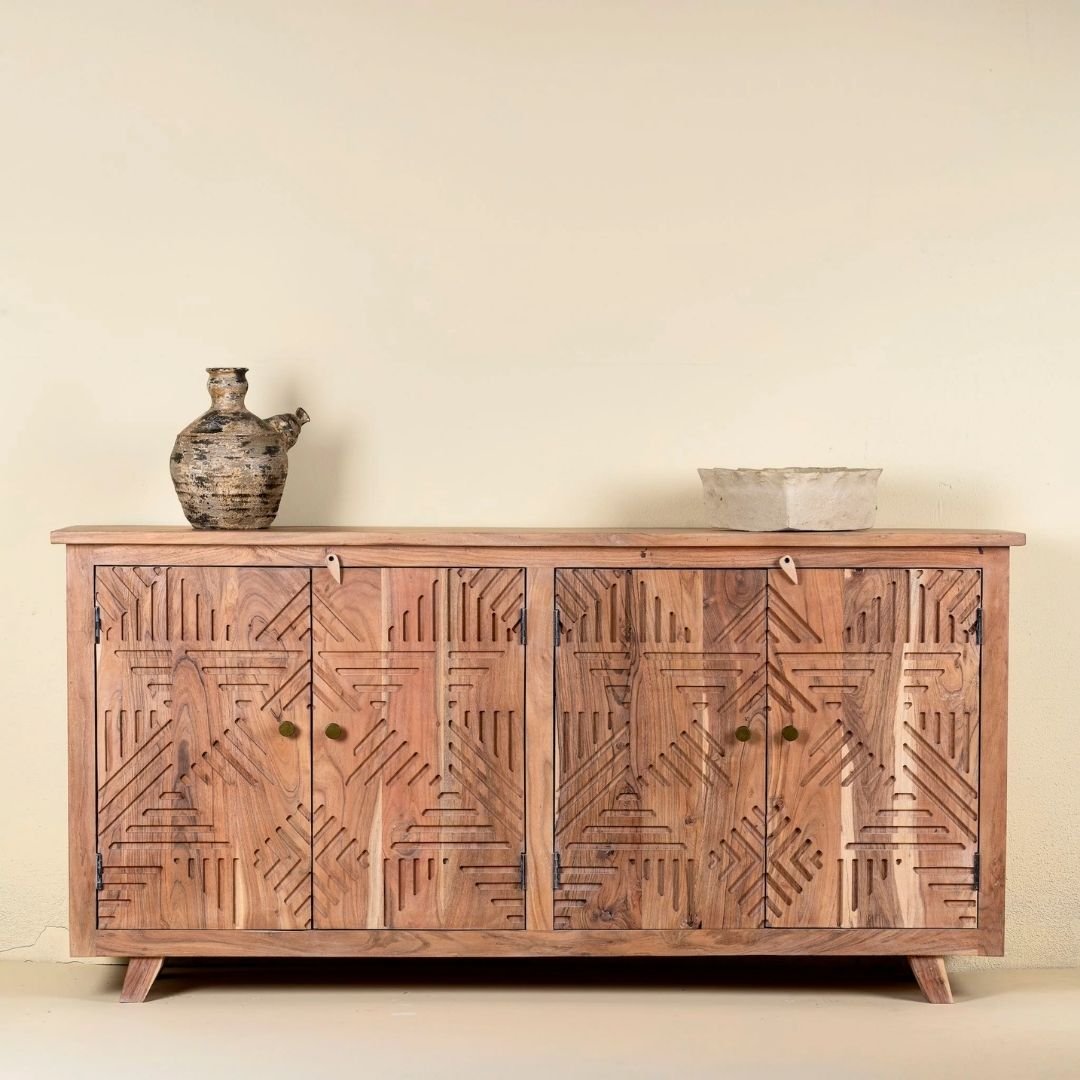 Shubhra Carved Acacia Wood Sideboard Natural Elegance 180cm