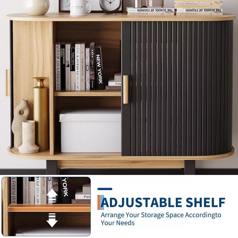 Sideboard Buffet Cabinet with Fluted Design & Sliding Doors