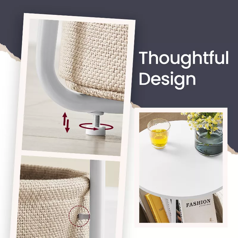 Small Round Side Table with Storage – Modern White End Table