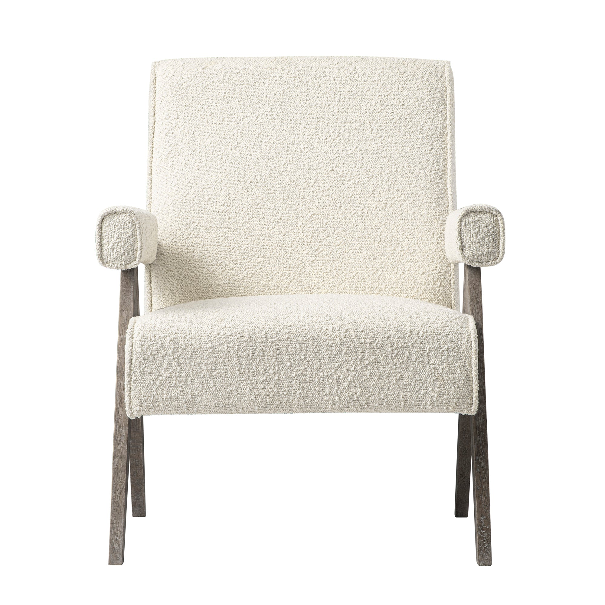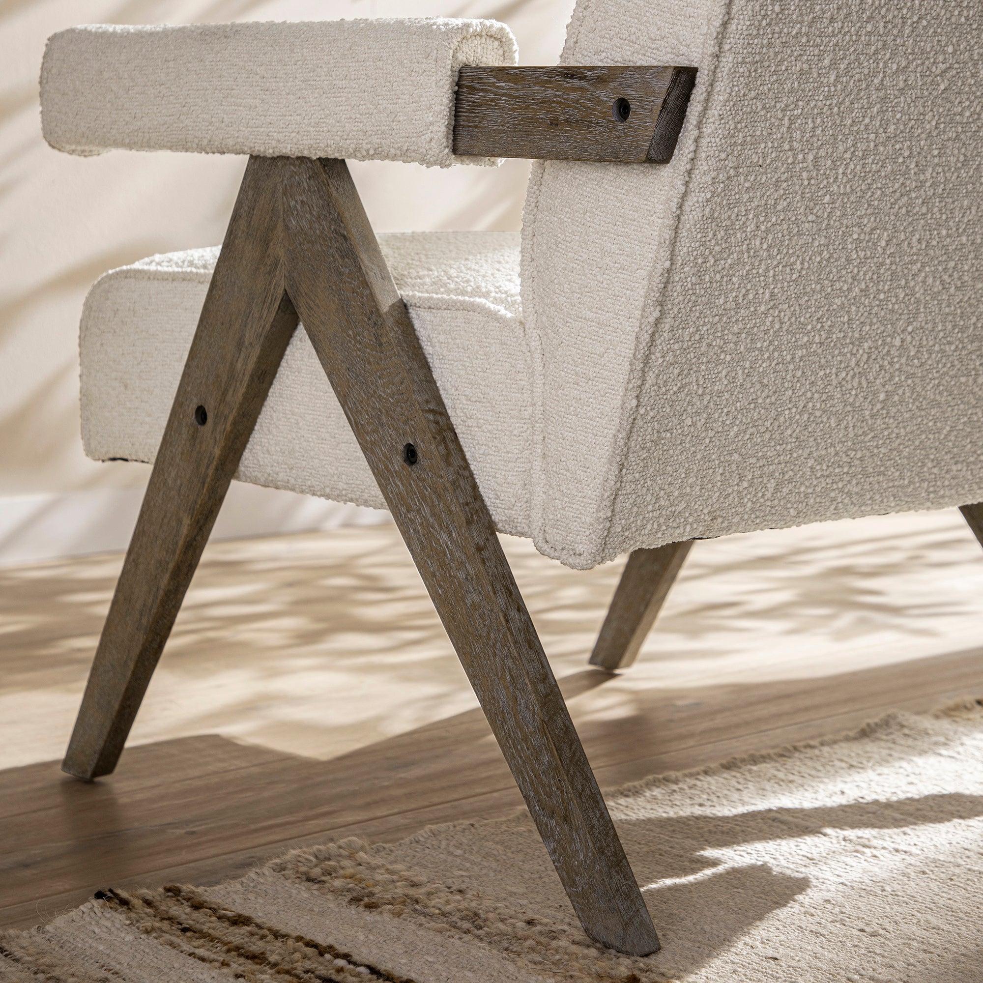 Soft Beige Bouclé Armchair with Weathered Oak Frame