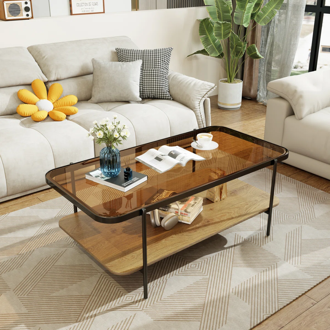 - Tempered Glass Top: This center table uses a brown tempered glass top, this color makes the overall look very high-end and also ensures its durability. It enhances the beauty of the private space.