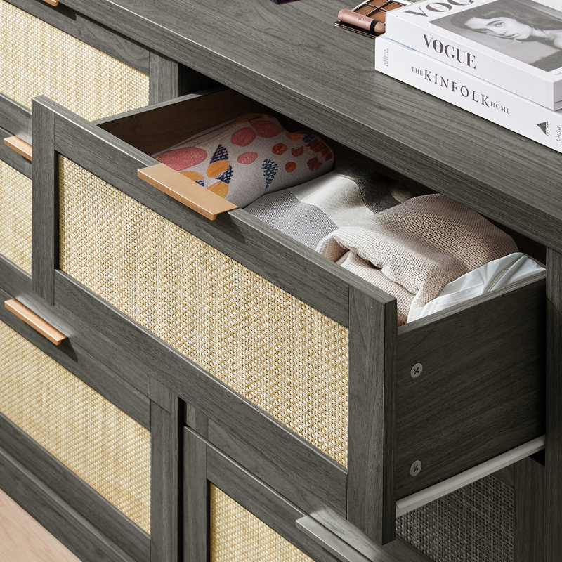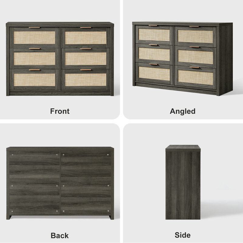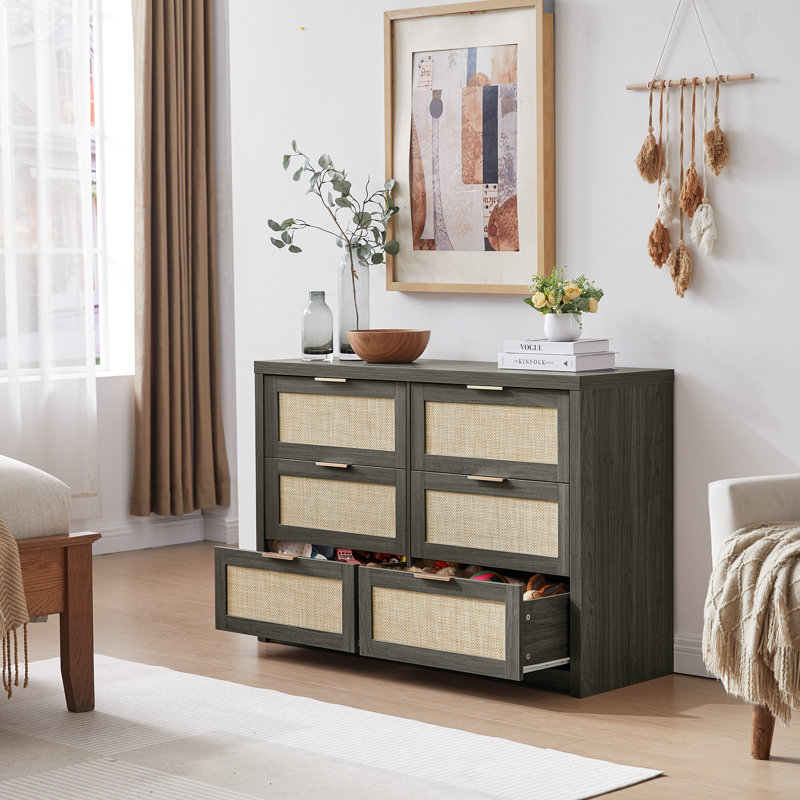 Solid Sheesham Wood Walnut Finish Dresser with 6 Drawers – Bedroom Storage Chest