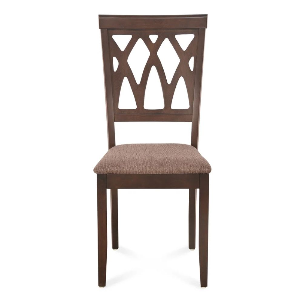 • Chairs with criss-cross backrests add style, while fabric upholstered seats provide comfort