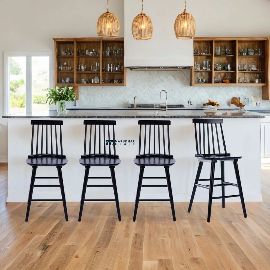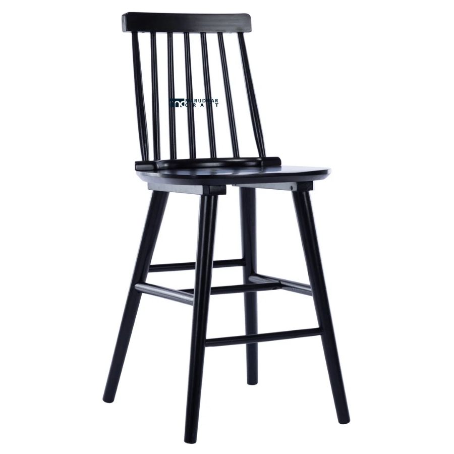 Give your kitchen or bar area a bold and timeless look with this solid wood bar chair. Designed with a classic spindle backrest and a comfortable wooden seat, this chair combines traditional craftsmanship with modern appeal. The sleek black finish adds elegance and contrasts beautifully with light interiors, making it a perfect fit for contemporary, farmhouse, and classic décor styles.