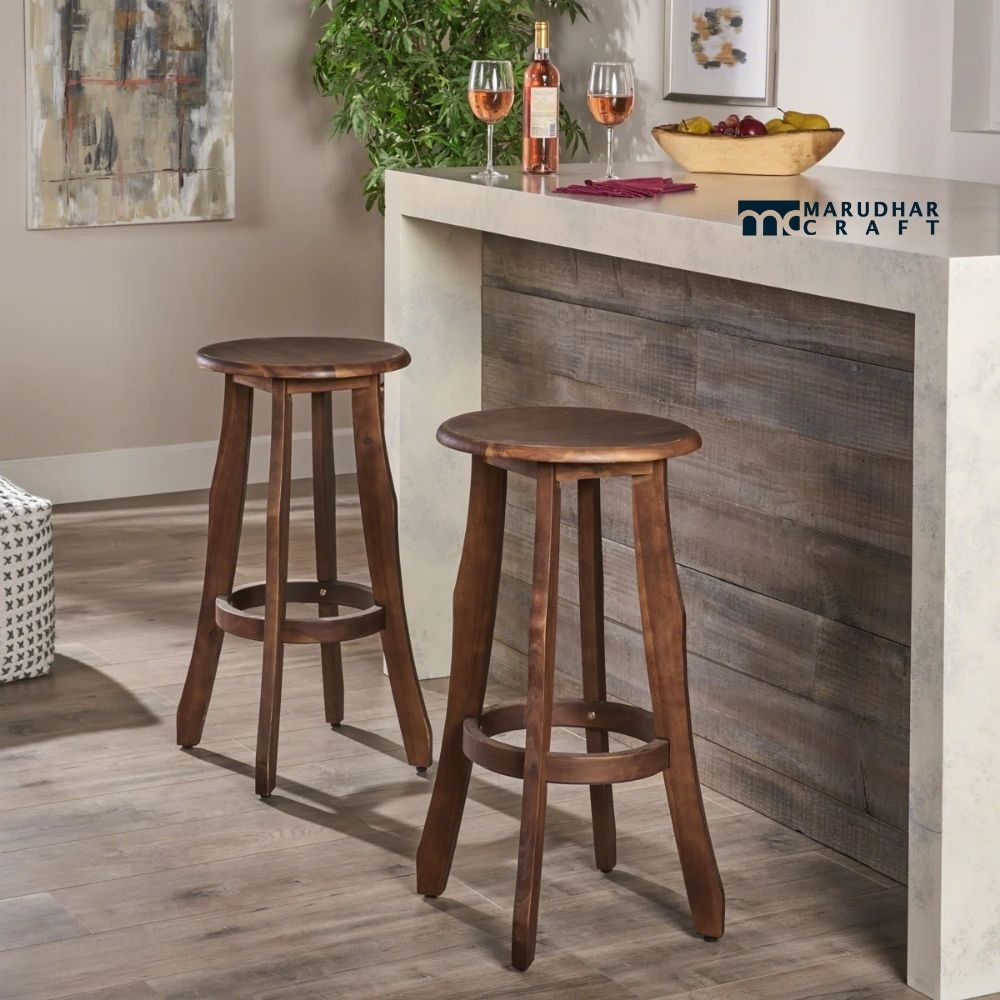 Add a touch of natural elegance to your home with this finely crafted set of two solid wood bar stools. Built from high-quality hardwood, these stools offer remarkable strength, stability, and a rich finish that complements Indian décor beautifully. Their clean silhouette and smooth edges make them suitable for both modern and traditional interiors.