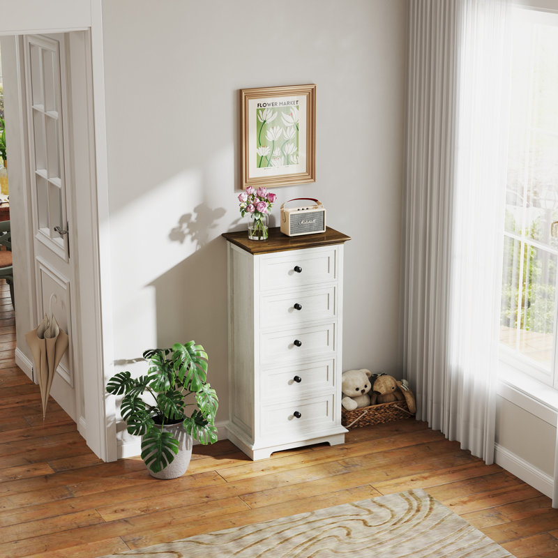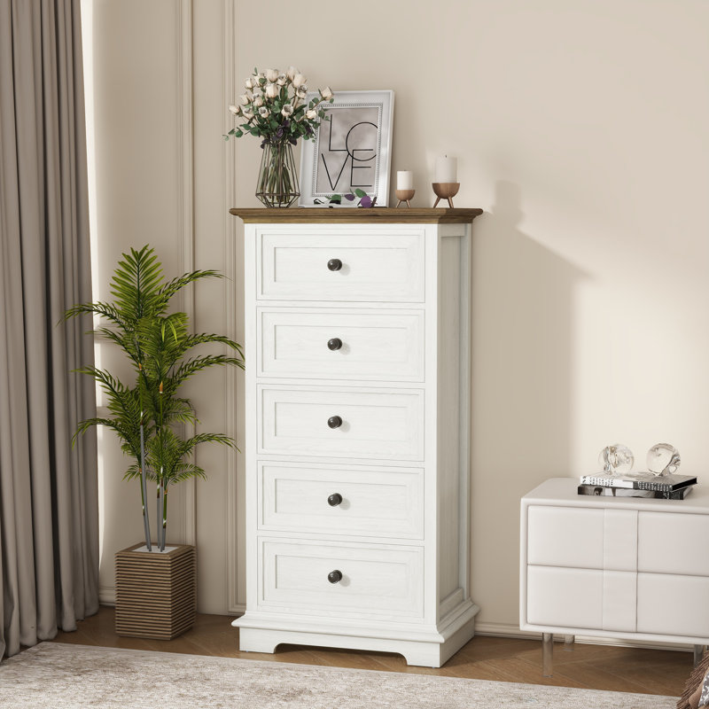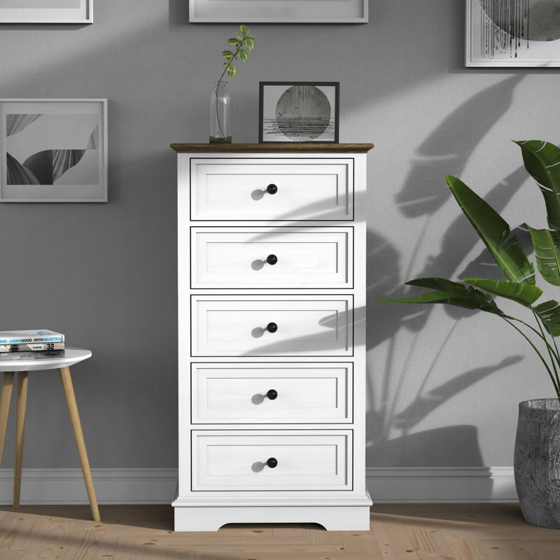 Solid Wood Chest with Five Drawer Storage for Bedroom, Living Space and Home Organisation