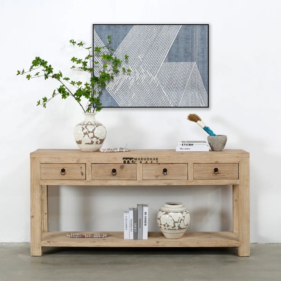 Crafted from premium quality solid wood, the console table highlights natural wood grain in a light, earthy finish. Its versatile design makes it perfect for entryways, hallways, living rooms, or behind sofas, blending effortlessly with modern, rustic, and Scandinavian interiors.