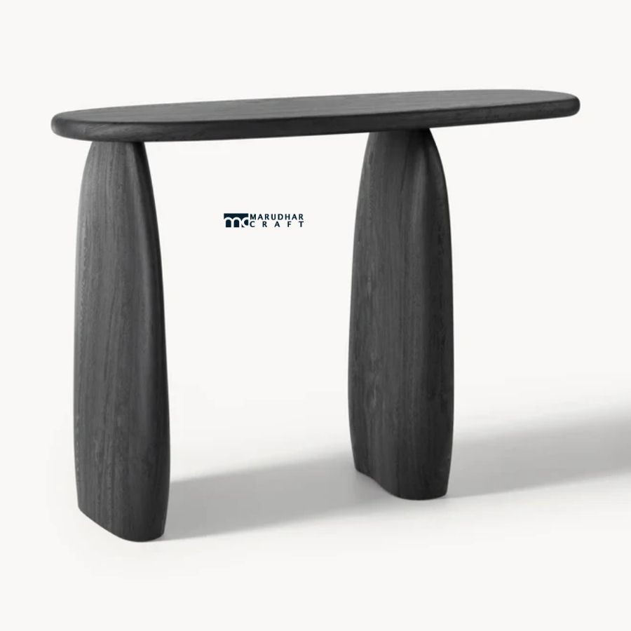 Make a bold contemporary statement with this modern solid wood console table, designed with a sleek tabletop and striking sculptural pillar legs. Finished in an elegant matte black tone, this table combines artistic form with everyday functionality. Its minimalist yet powerful design makes it ideal for entryways, hallways, living rooms, or as an accent console in modern and luxury interiors.