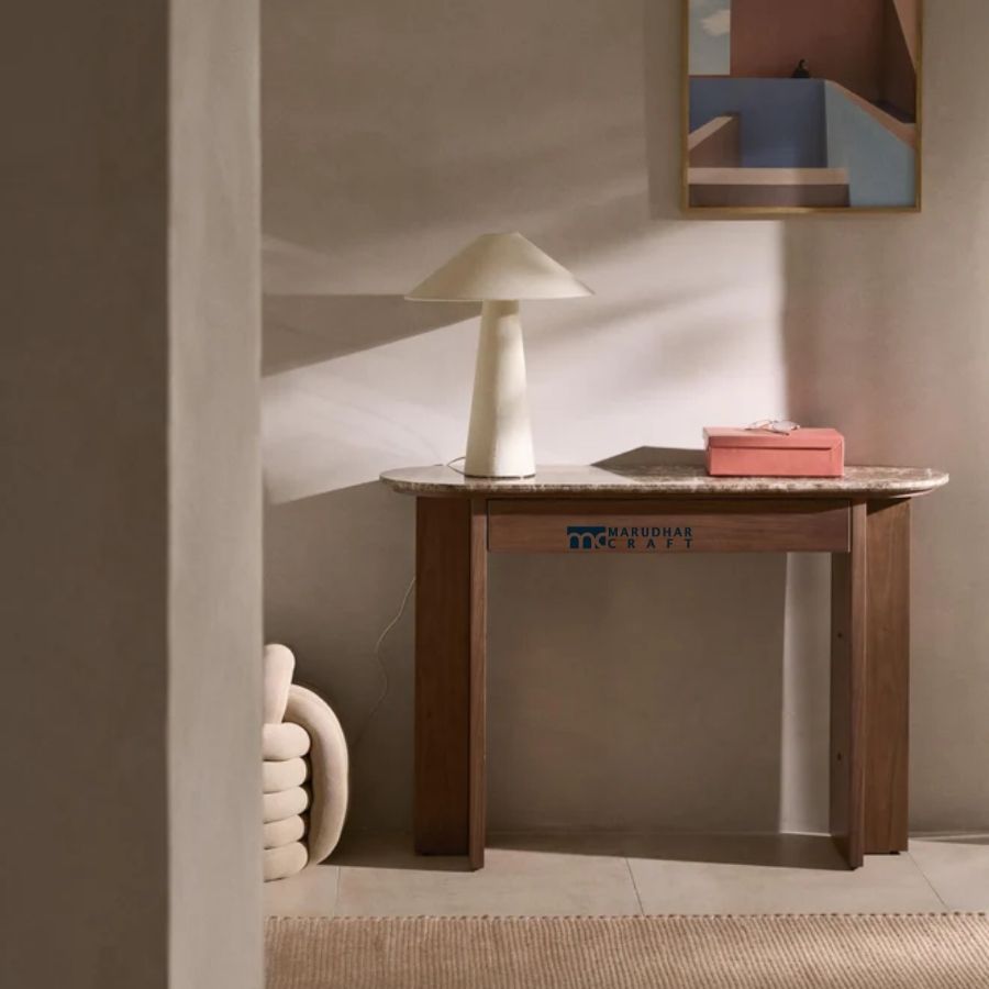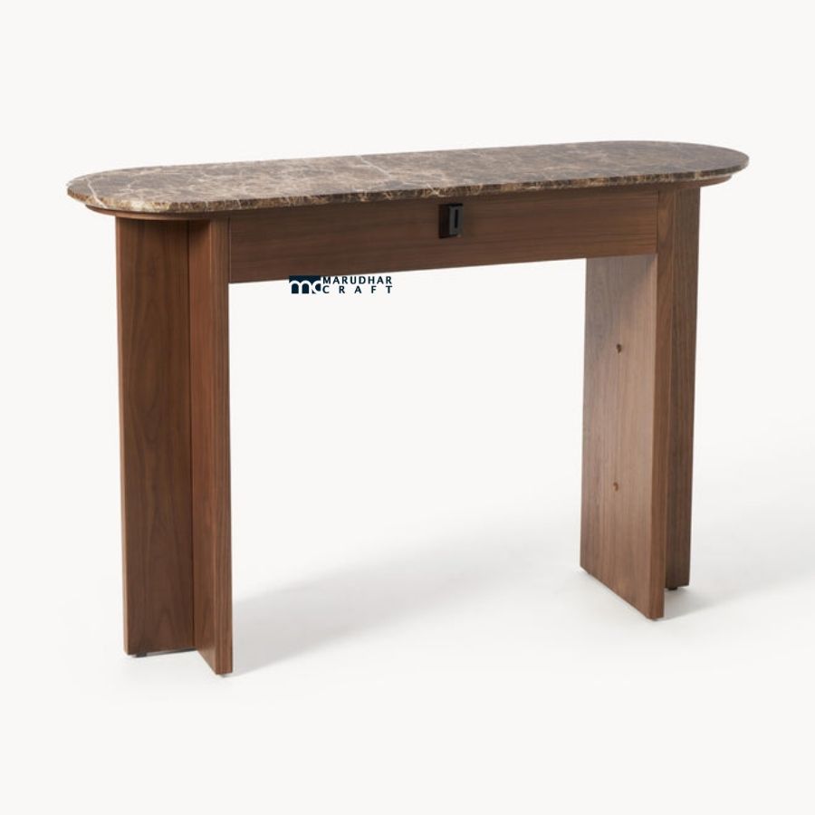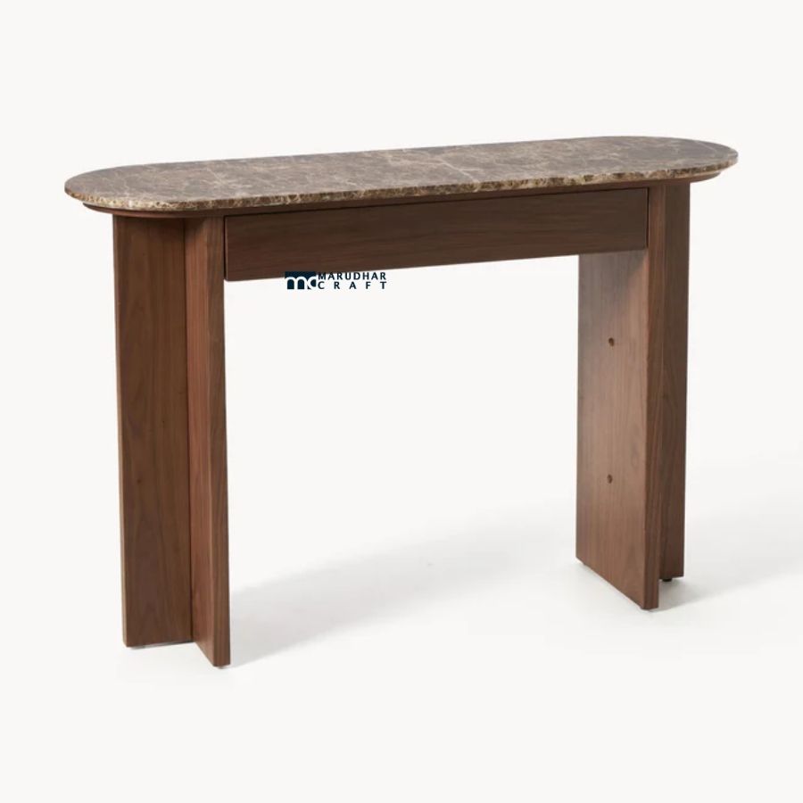 Add understated luxury to your interior with this modern solid wood console table featuring a premium stone tabletop. Crafted with a sturdy solid wood base in a warm walnut finish, the table is topped with a smooth stone surface that enhances durability and elegance. Its clean silhouette and refined materials make it perfect for entryways, hallways, living rooms, or as a sophisticated accent table in contemporary interiors.
