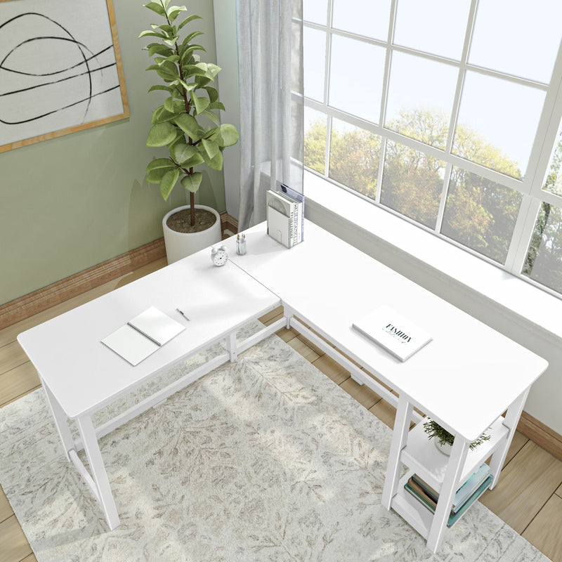 Solid Wood Corner Desk with Storage Shelves for Study and Work