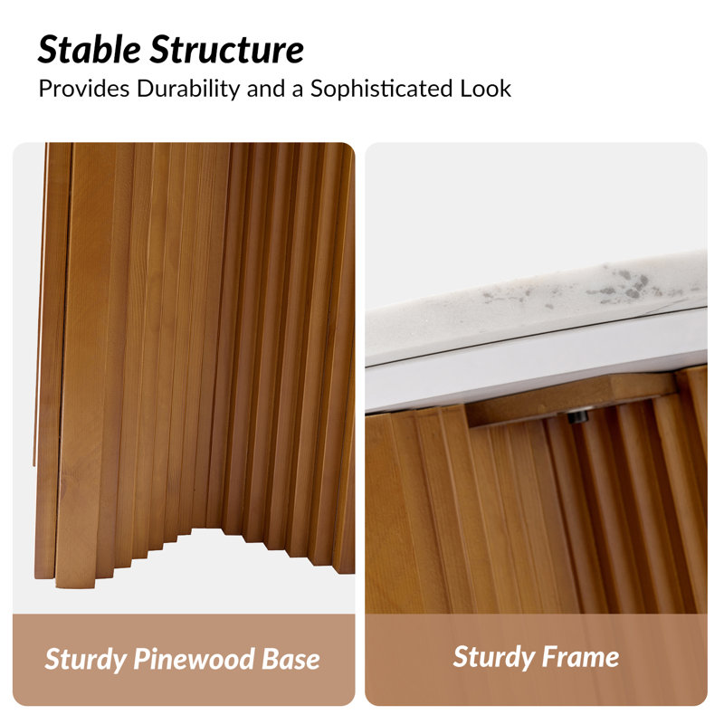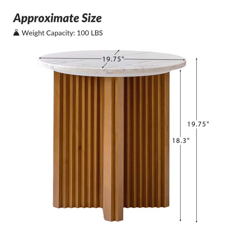 Add a refined modern touch to your living space with this handcrafted end table featuring a natural marble top and a beautifully fluted solid wood base. Designed with minimalist aesthetics inspired by contemporary Indian homes, this table blends effortlessly with every interior style – classic, modern, luxury, or earthy décor. Each piece is made from genuine solid wood and premium marble, ensuring long-lasting durability, effortless elegance, and a timeless statement. Ideal as a corner table, bedside table, lamp stand, or living room accent, this table offers both utility and style while keeping your home interiors uncluttered and graceful.