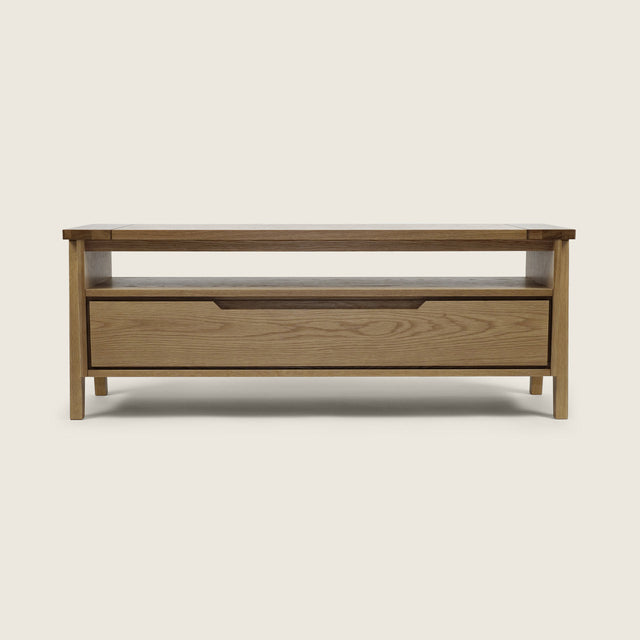 Give your entertainment space a refined, timeless look with this beautifully handcrafted Solid Wood Media Console, designed specially for Indian homes. Built from premium solid wood, it features a smooth natural finish, sturdy frame, and well-planned storage to organise set-top boxes, gaming consoles, remotes, speakers, and everyday essentials. The clean design blends effortlessly with modern, classic, and earthy interiors, while the handcrafted detailing by skilled Indian artisans ensures durability and long-term stability. This media console not only elevates your TV area but also adds warmth and depth to your living room décor.