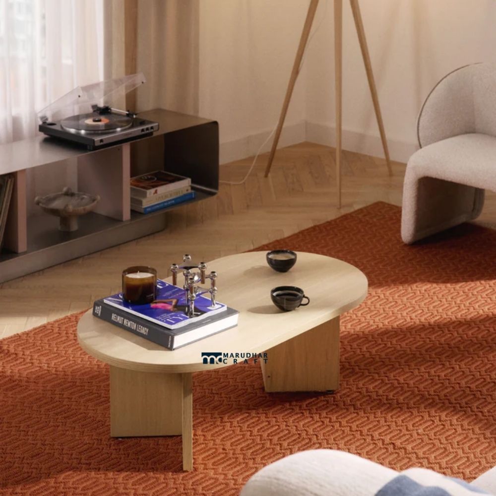This oval wooden coffee table is thoughtfully designed to bring elegance and comfort to Indian living spaces. Crafted from solid wood, its oval shape offers a soft, flowing look while allowing easy movement around the table. The natural finish enhances the wood’s grain, adding warmth and character to your home. Ideal for everyday use, this centre table is perfect for serving guests, keeping essentials, or displaying décor while blending seamlessly with both modern and traditional Indian interiors.