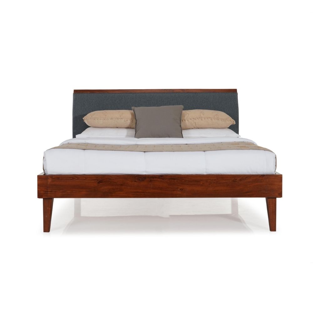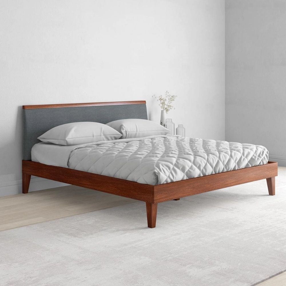 Solid Wood Queen Size Bed with Upholstered Headboard