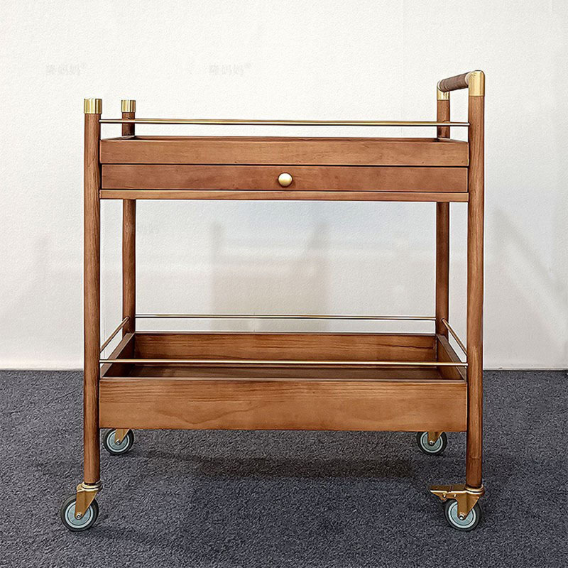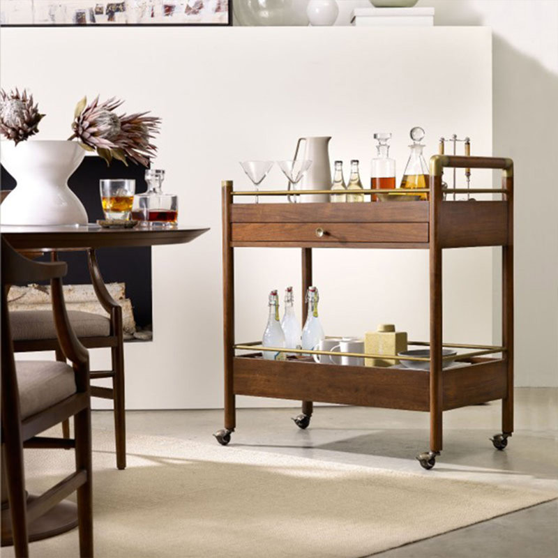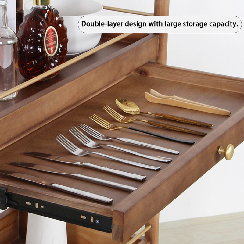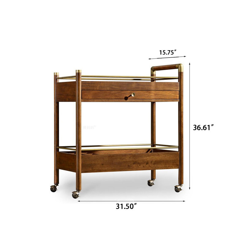Finished in a rich nut-brown tone, this solid wood rolling bar cart adds warm character and organised functionality to your home. Built with a strong frame and smooth wooden profile, it offers convenient shelving for bottles, glassware, bar tools, snacks, and décor accents. Lockable wheels allow free movement while ensuring steady placement during serving. Ideal for living rooms, dining corners, lounges, open kitchens, or balcony bar setups, this cart blends everyday utility with an elegant, earthy look suited to Indian interiors.