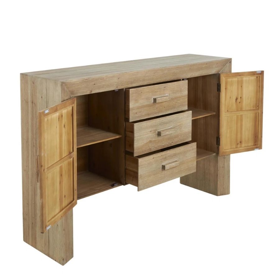 Solid Wood Sideboard Cabinet with Drawers – Natural Distressed Finish