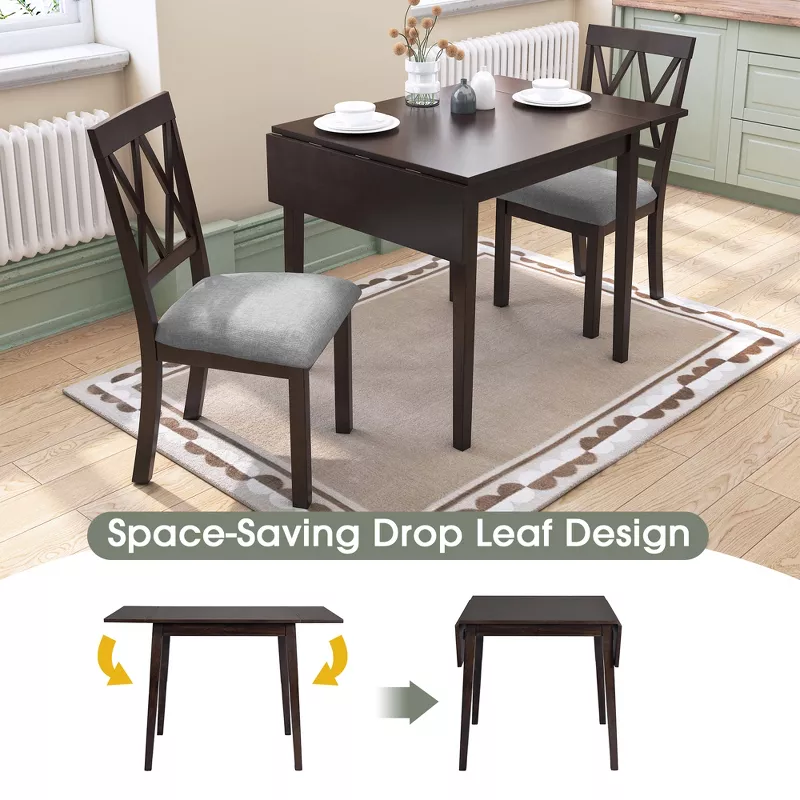 Space-Saving Drop-Leaf Dining Table for 4 with Rubberwood Legs – Brown MDF Top