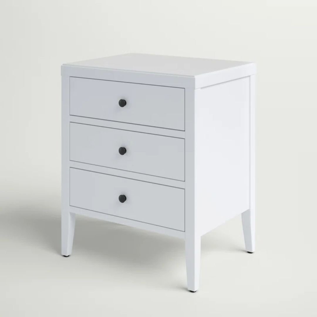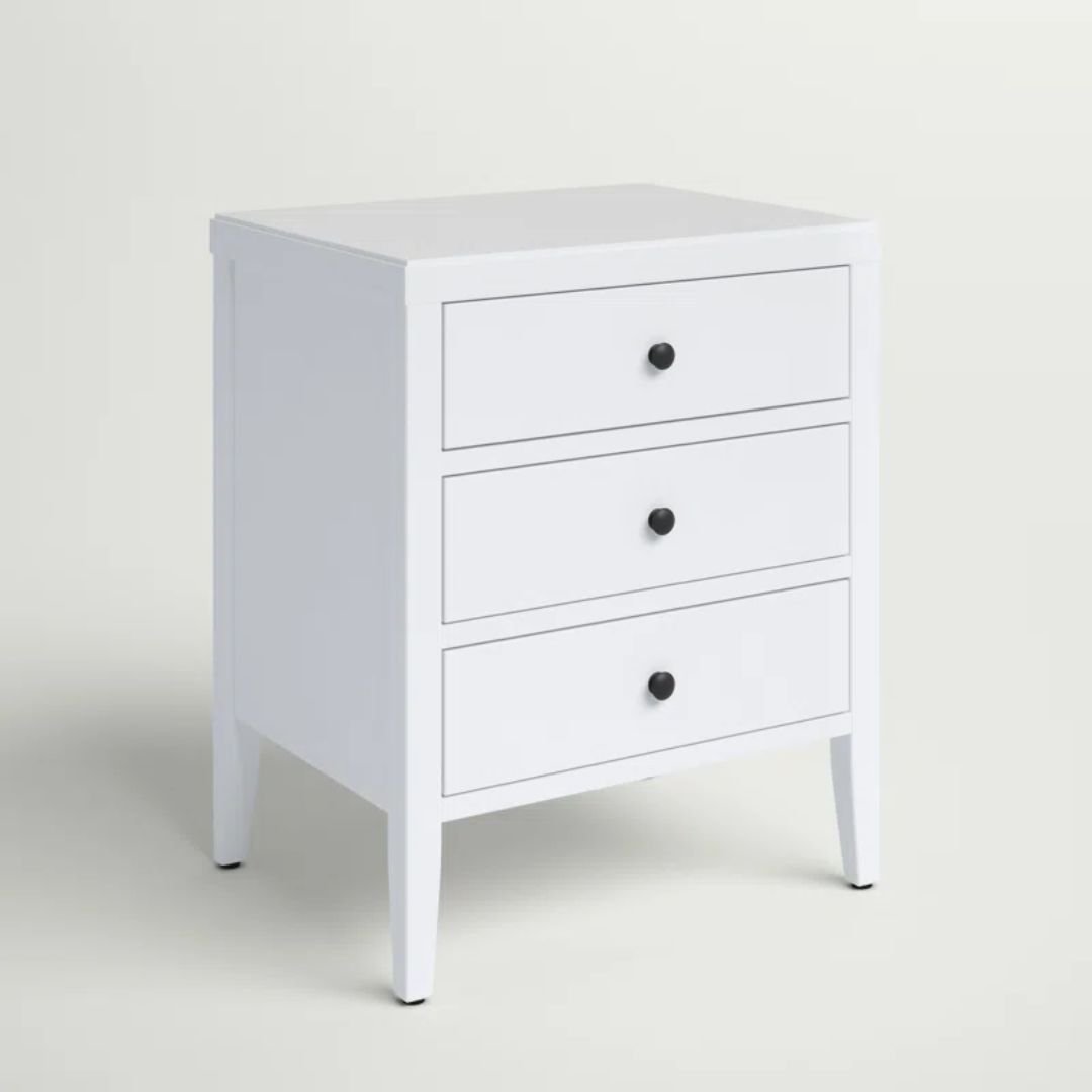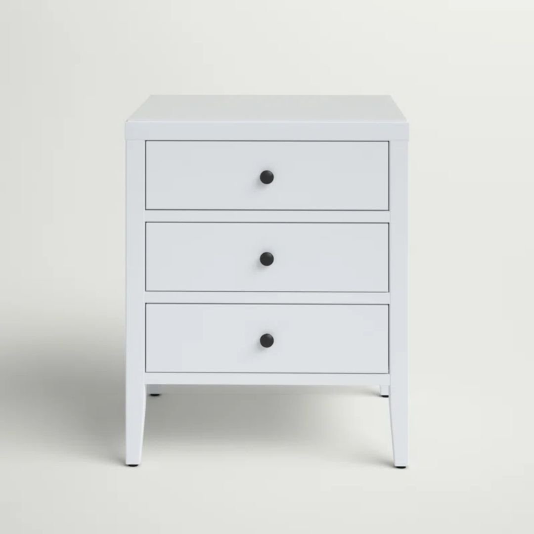 This 3-drawer nightstand keeps bedside essentials right within reach. The clean-lined frame is made from solid and engineered wood with a finish of your choice, and it rests on slightly tapered legs. Three drawers with round handles open to reveal room for reading glasses, books, and chargers. This nightstand features an 18.5″ wide surface that accommodates a table lamp and a few accent pieces. It also measures 23″ tall, making it ideal for smaller spaces. But the best part? This nightstand arrives fully assembled, no toolbelt needed.