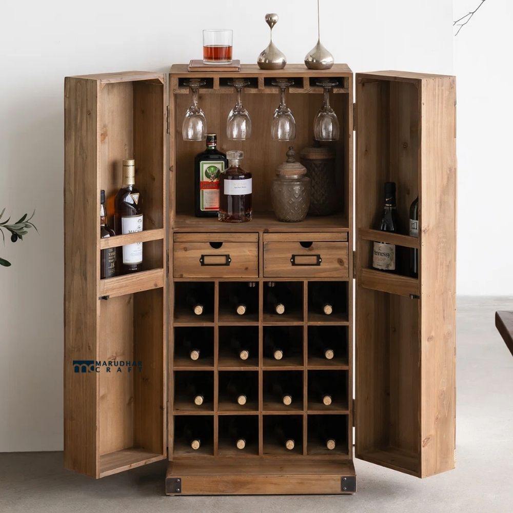 This tall wine and coffee bar cabinet is a smart and stylish storage solution for modern Indian homes. Designed to organize your wine bottles, glasses, and coffee essentials in one place, it helps keep your space neat and well-arranged. The vertical design saves floor space while offering ample storage, making it ideal for apartments and compact living areas. With dedicated racks for wine bottles and glassware, this cabinet adds convenience along with a refined look, perfect for hosting guests or everyday use.