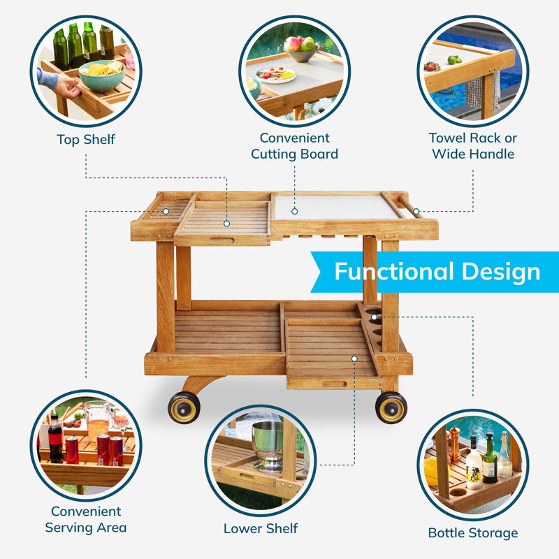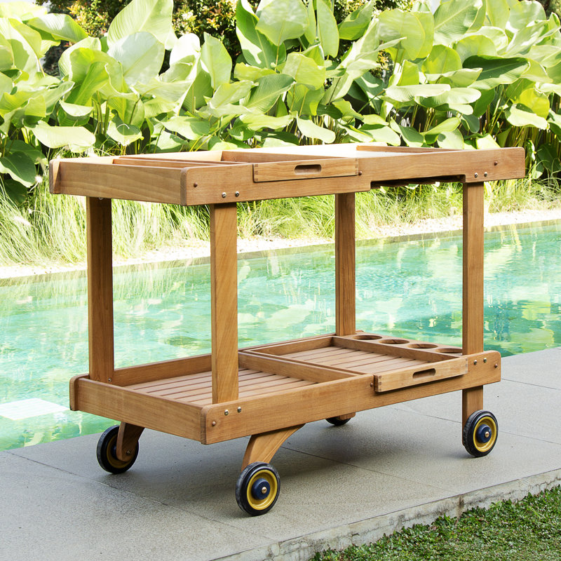 Crafted from premium-grade teak wood, this outdoor bar trolley brings a touch of timeless Indian elegance to your patio gatherings, terrace evenings, or garden celebrations. Designed with a sturdy frame, smooth wood texture, and weather-resistant build, it offers both charm and durability. Its spacious shelves, bottle slots, and serving surface make it convenient to organise beverages, glassware, and snacks. Whether entertaining guests or enjoying a relaxed evening, this teak bar trolley blends functionality with graceful design suited for Indian homes and outdoor lifestyles.