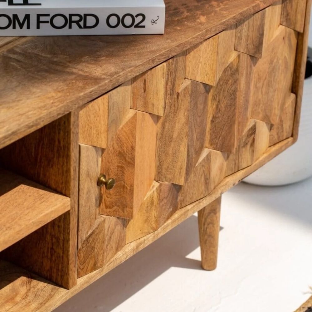 Teak Wood & Rattan TV Unit – Nismaaya Manti Media Console
